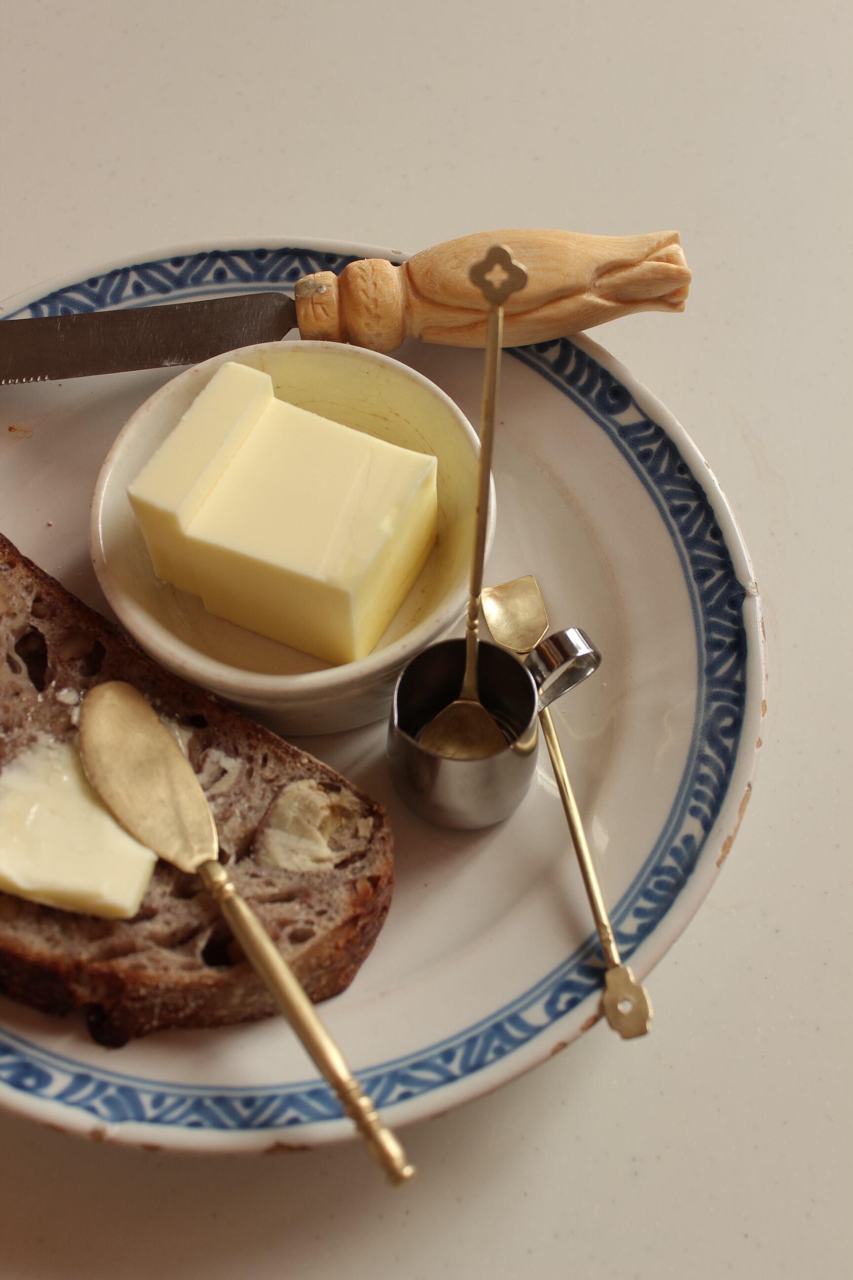 これまで真鍮やステンレスを主体としたカトラリーや箸置きを制作販売し、沢山の皆様の元へ届けることができました。ありがとうございました。/ 今回は温もりを感じられるウッドハンドルを組み合わせたバターナイフをリリース予定です。素材はヒノキとウォールナッツ。フランスの田舎で昔から使われていたかのようなおおらかな雰囲気を目指し、人の手の温もりが感じられるように全て手彫りで制作しています。小花などをあしらった可愛らしいデザイン。一つとして同じデザインはなく少量ずつの販売となりますが、食卓の彩りを添えることができたら幸いです。そこにあるだけで、なんだか嬉しい、そんな存在になれますように。ホリデーマーケットでお待ちしています🎅🏻