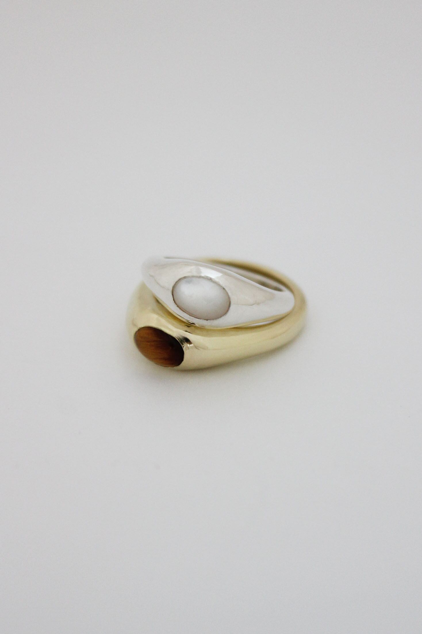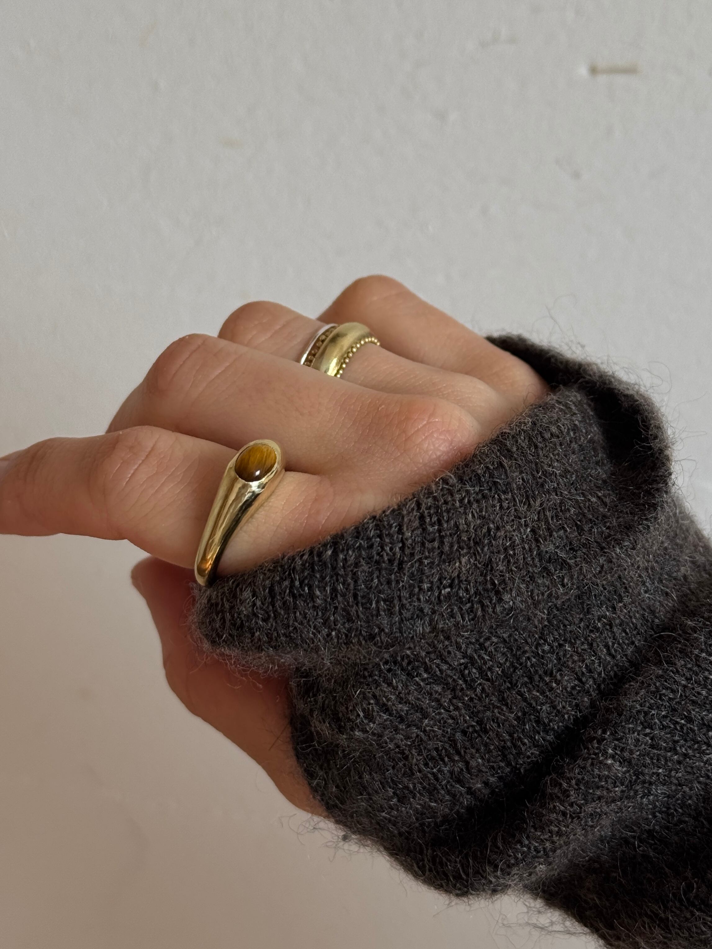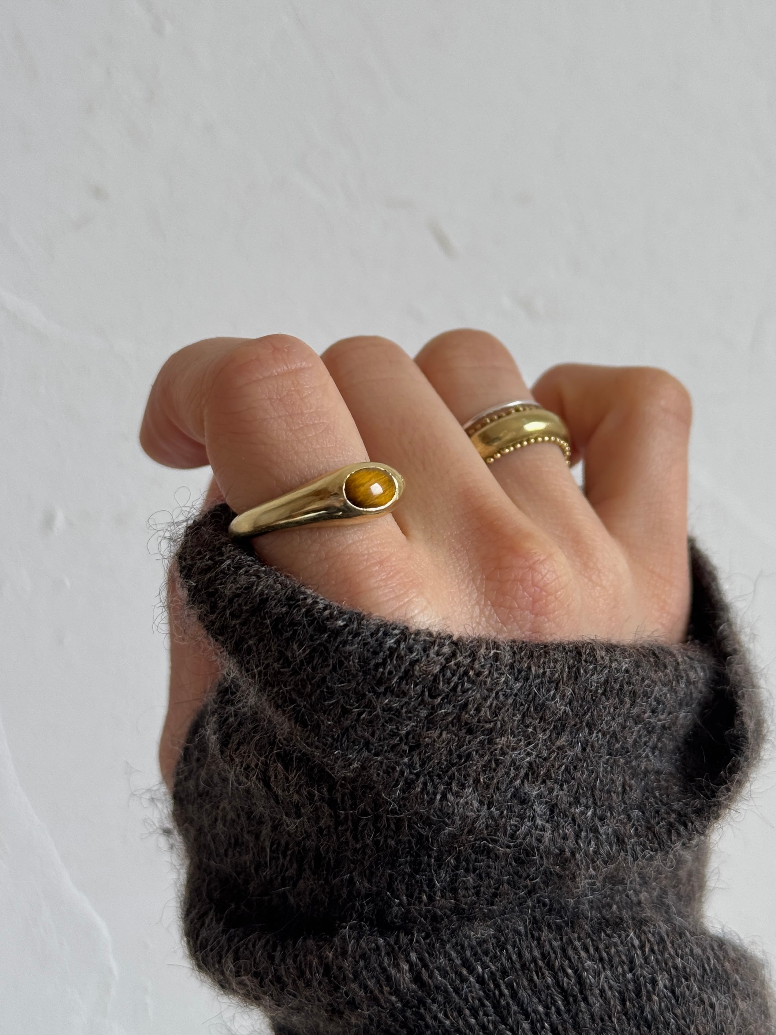 人気の高い tiger eye (タイガーアイ)を留めたストーンリング。