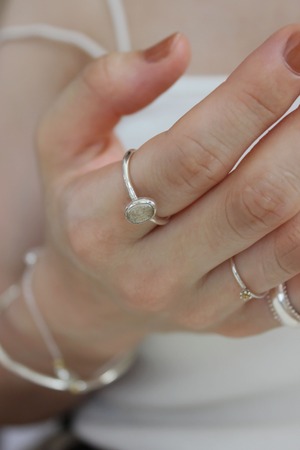 シンプルで華奢なボディに小さな小さなシトリンがきらりと輝くリング。