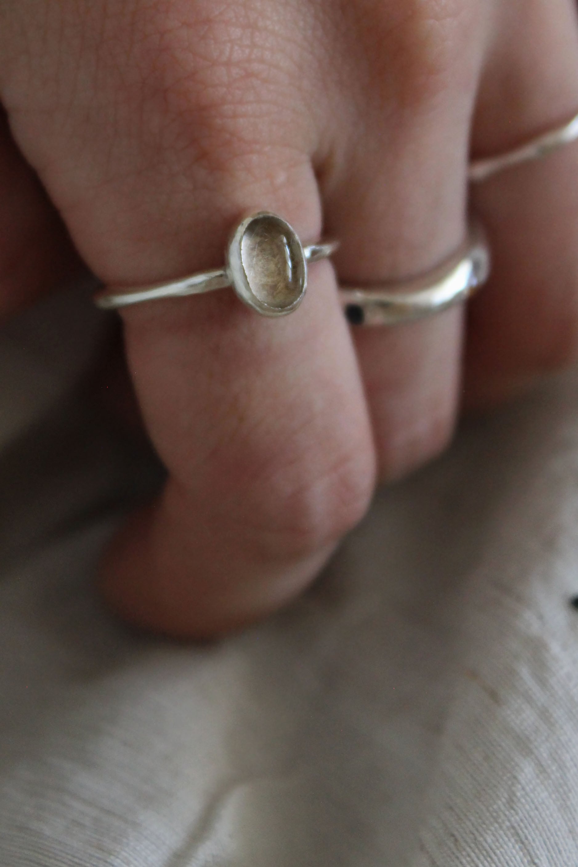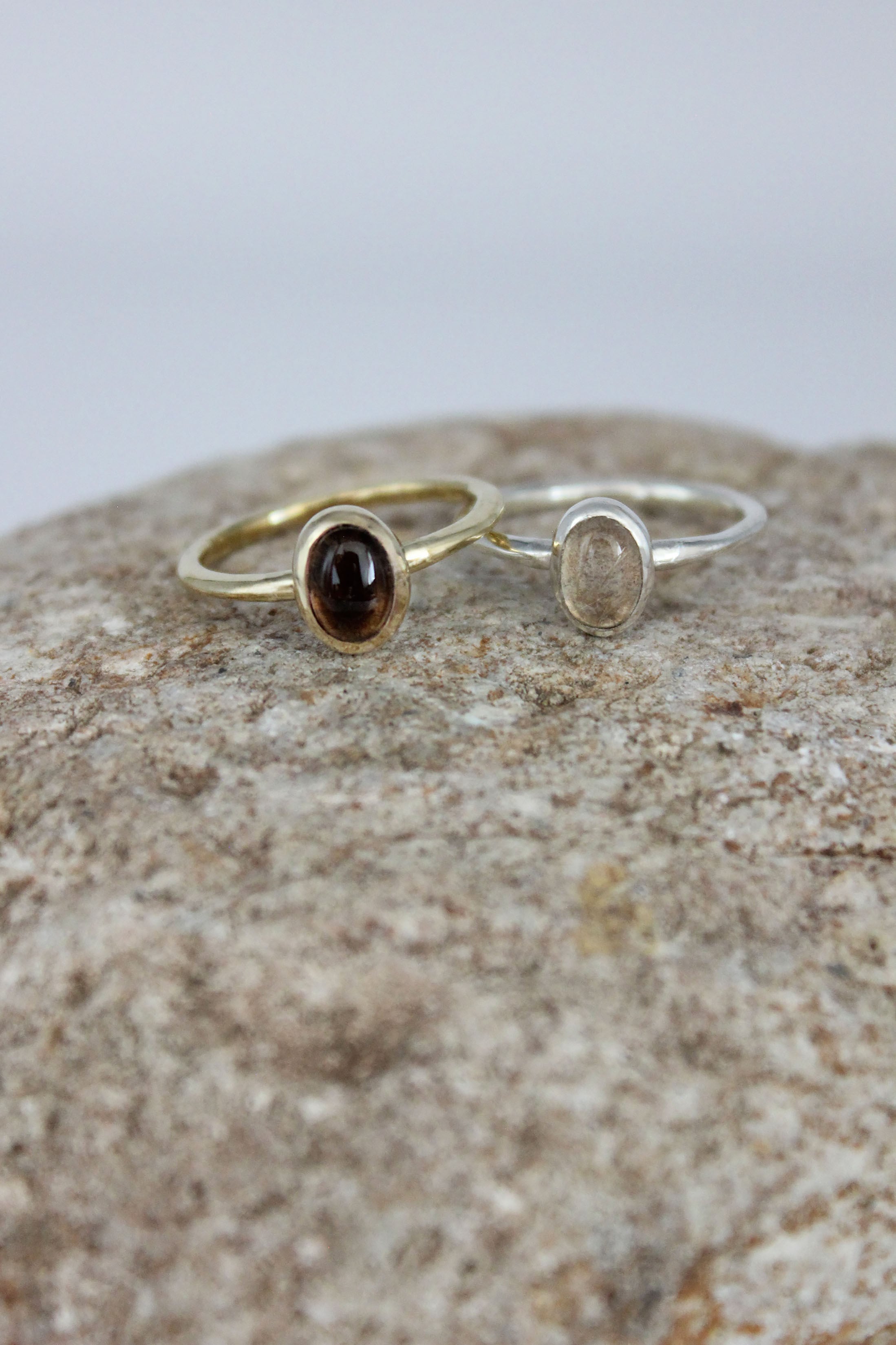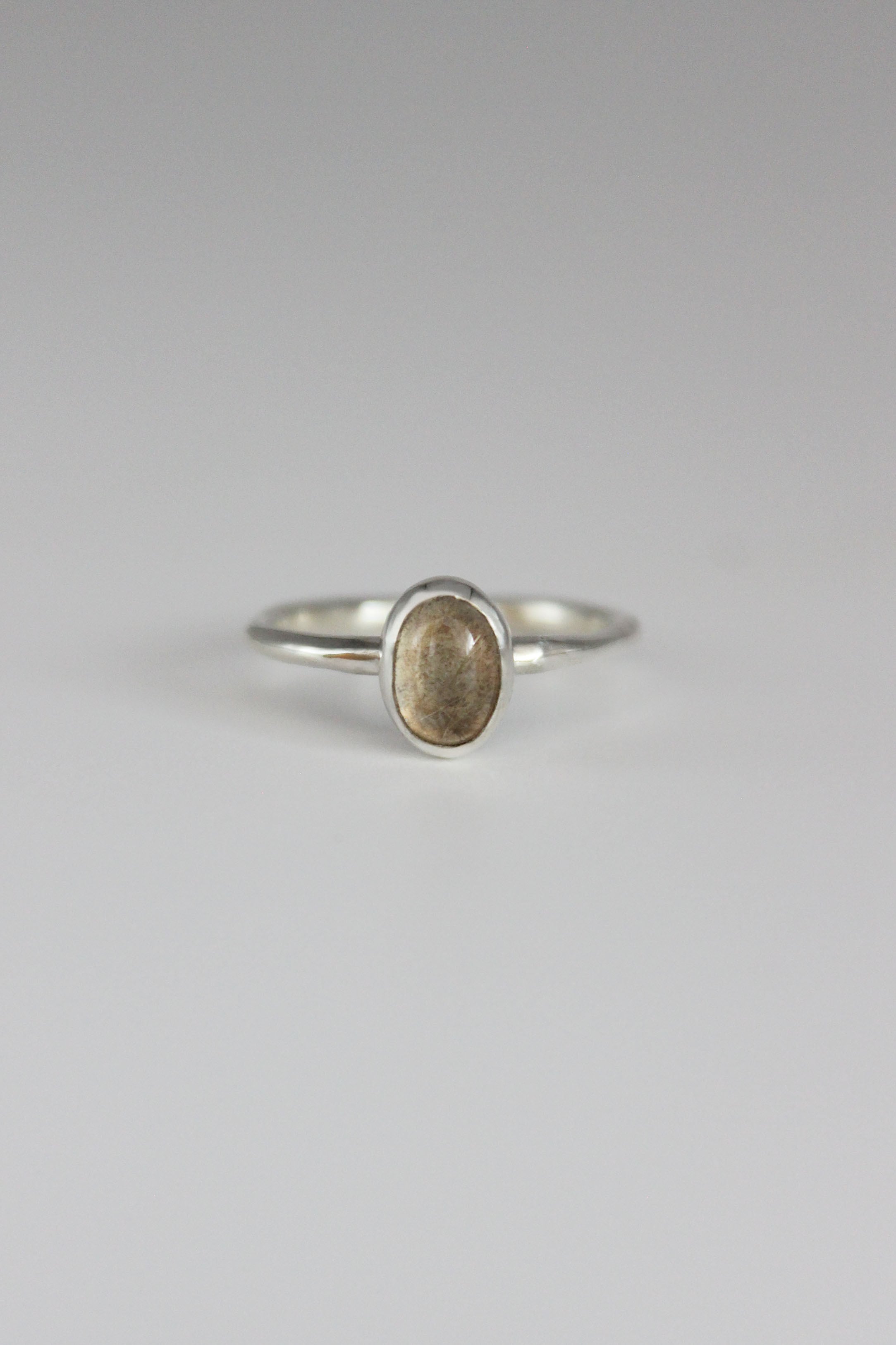 滑らかなボディにルチレイテッドクォーツを留めたストーンリング。