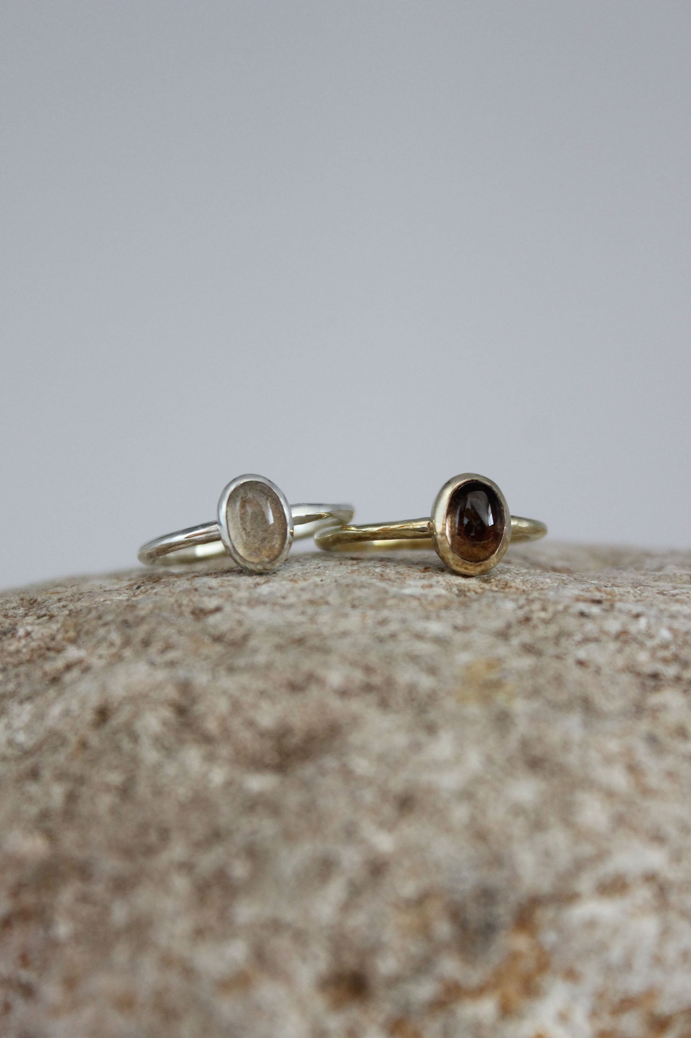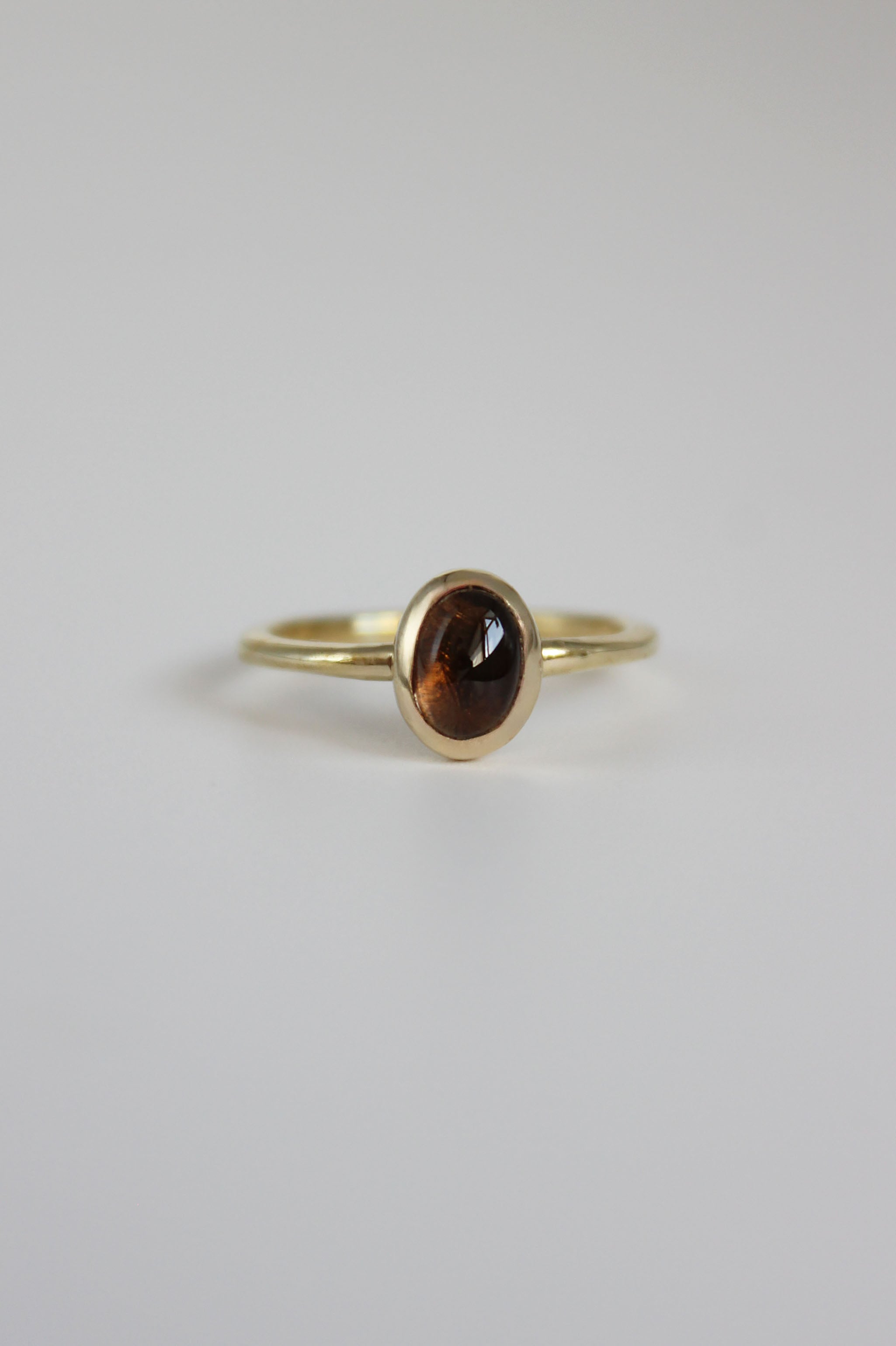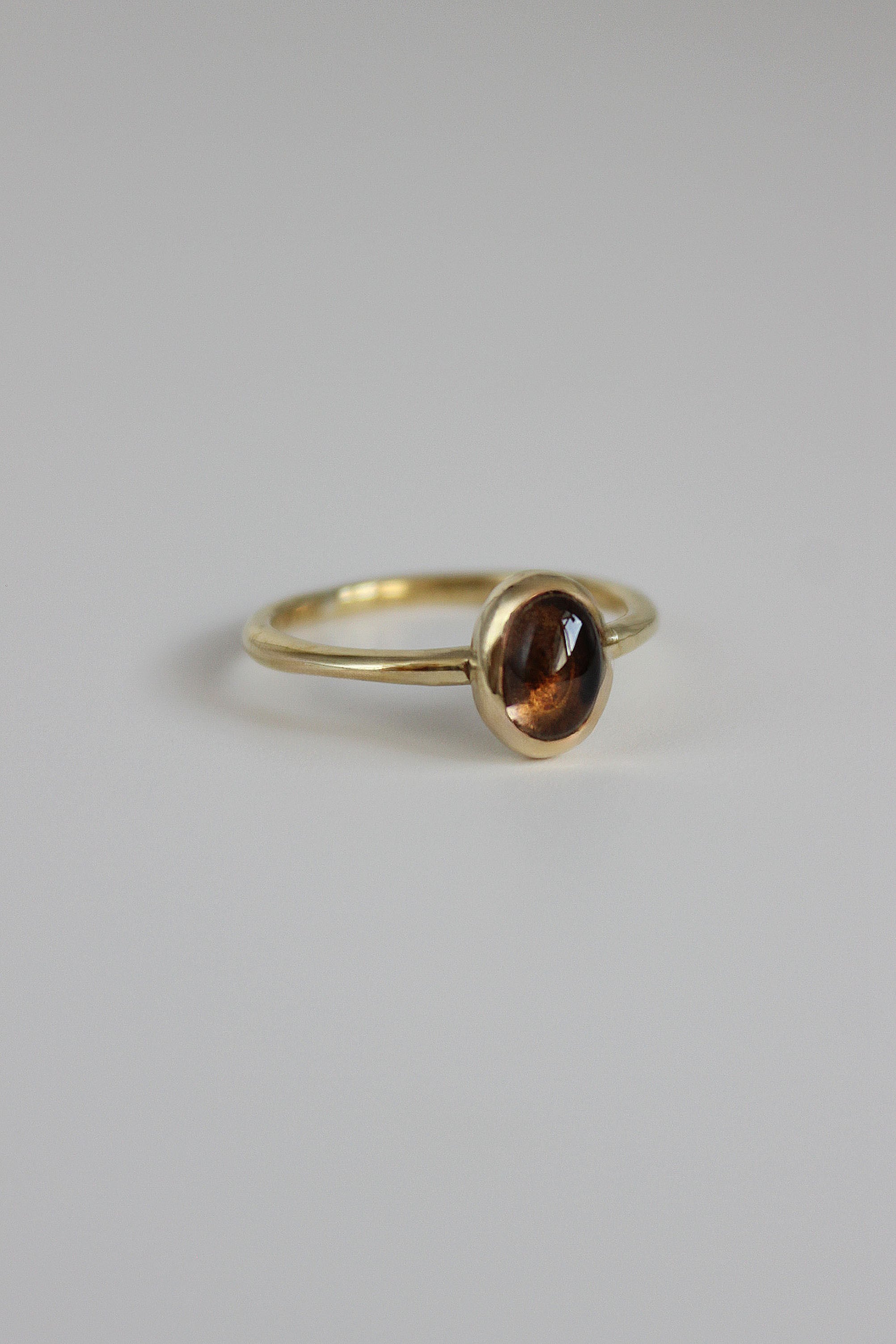 滑らかなボディに以前から人気のあるスモーキークオーツを留めたストーンリング。