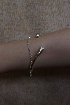 ハグしたような、手首に巻き付くようなデザインのバングル。