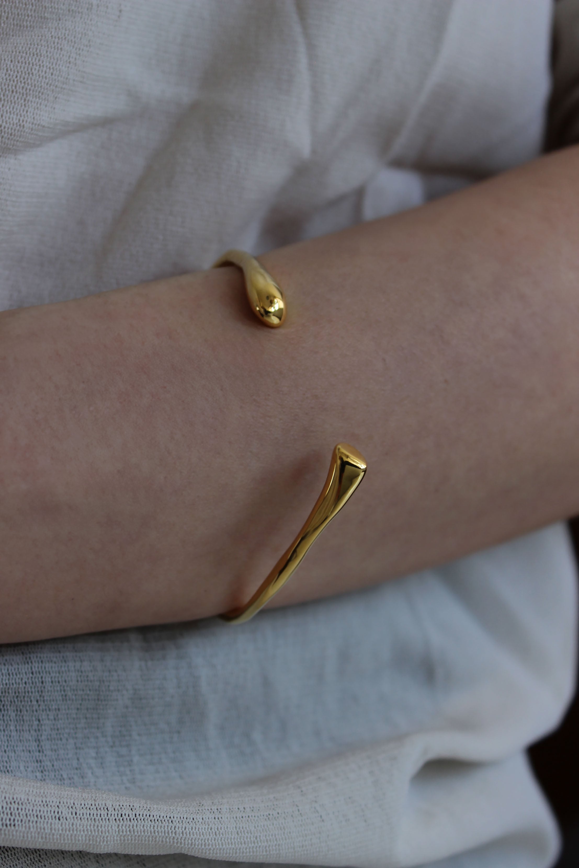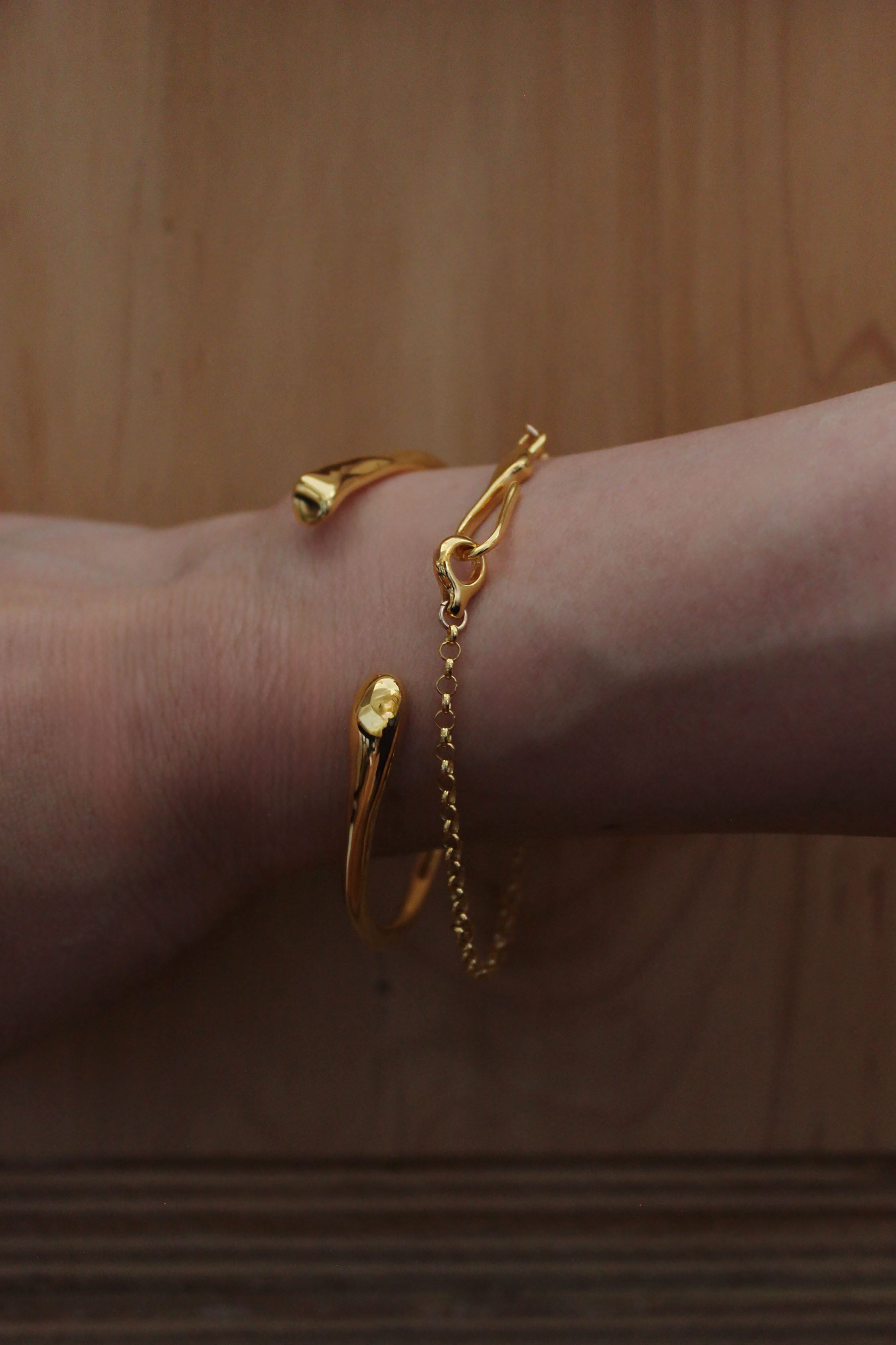 ハグしたような、手首に巻き付くようなデザインのバングル。