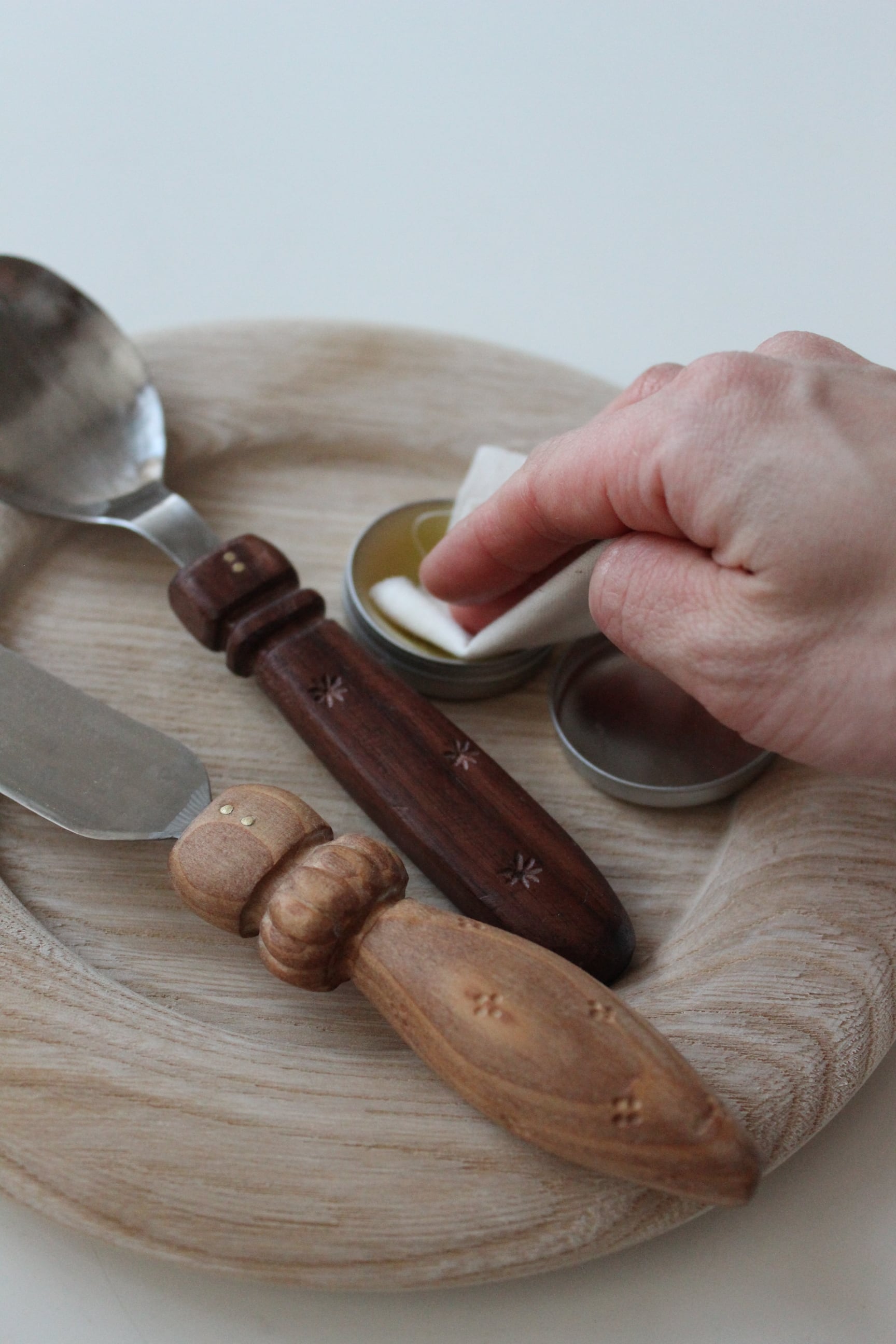 素材 : ウォールナット、桂、ステンレス、蜜蝋