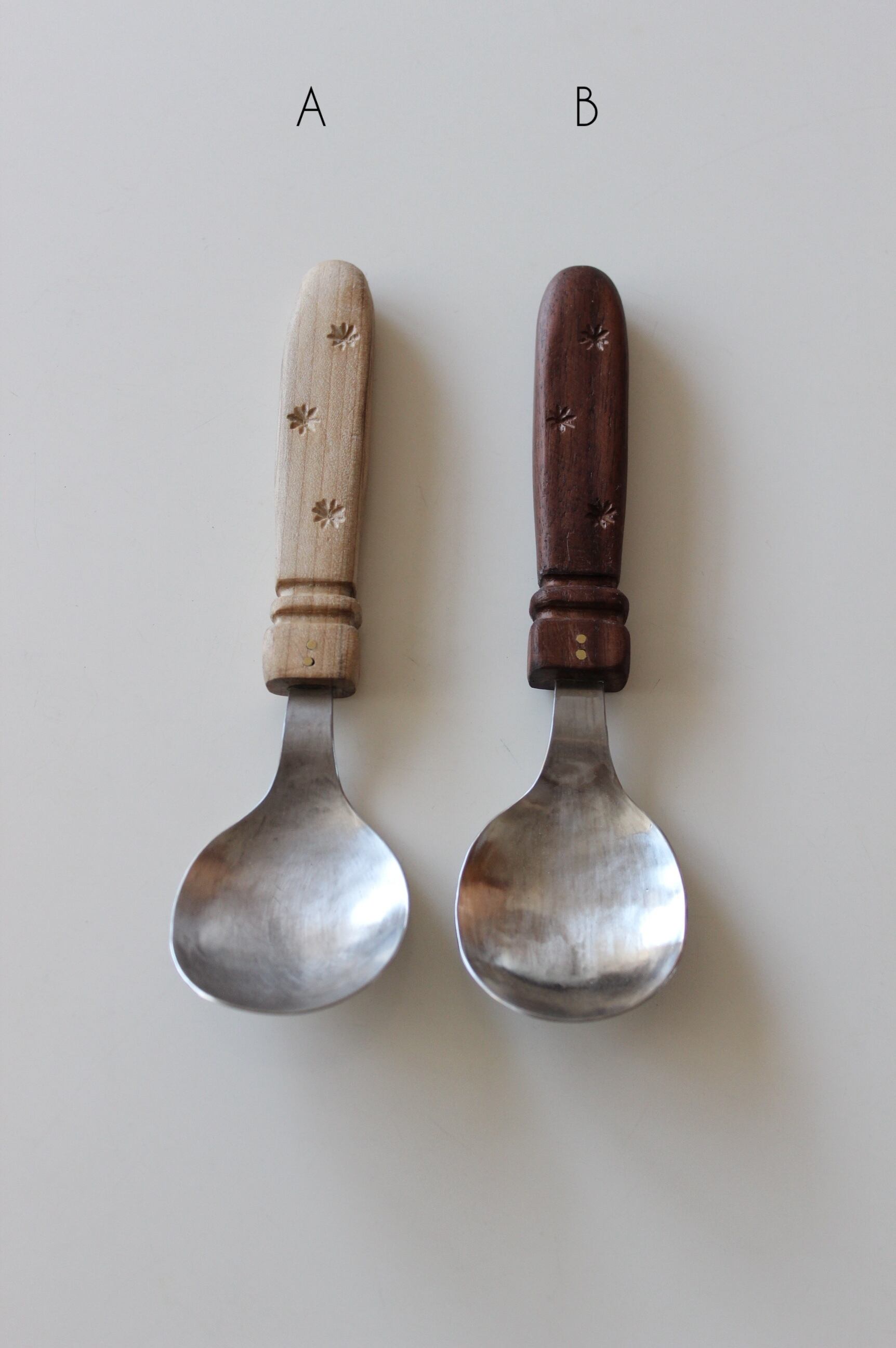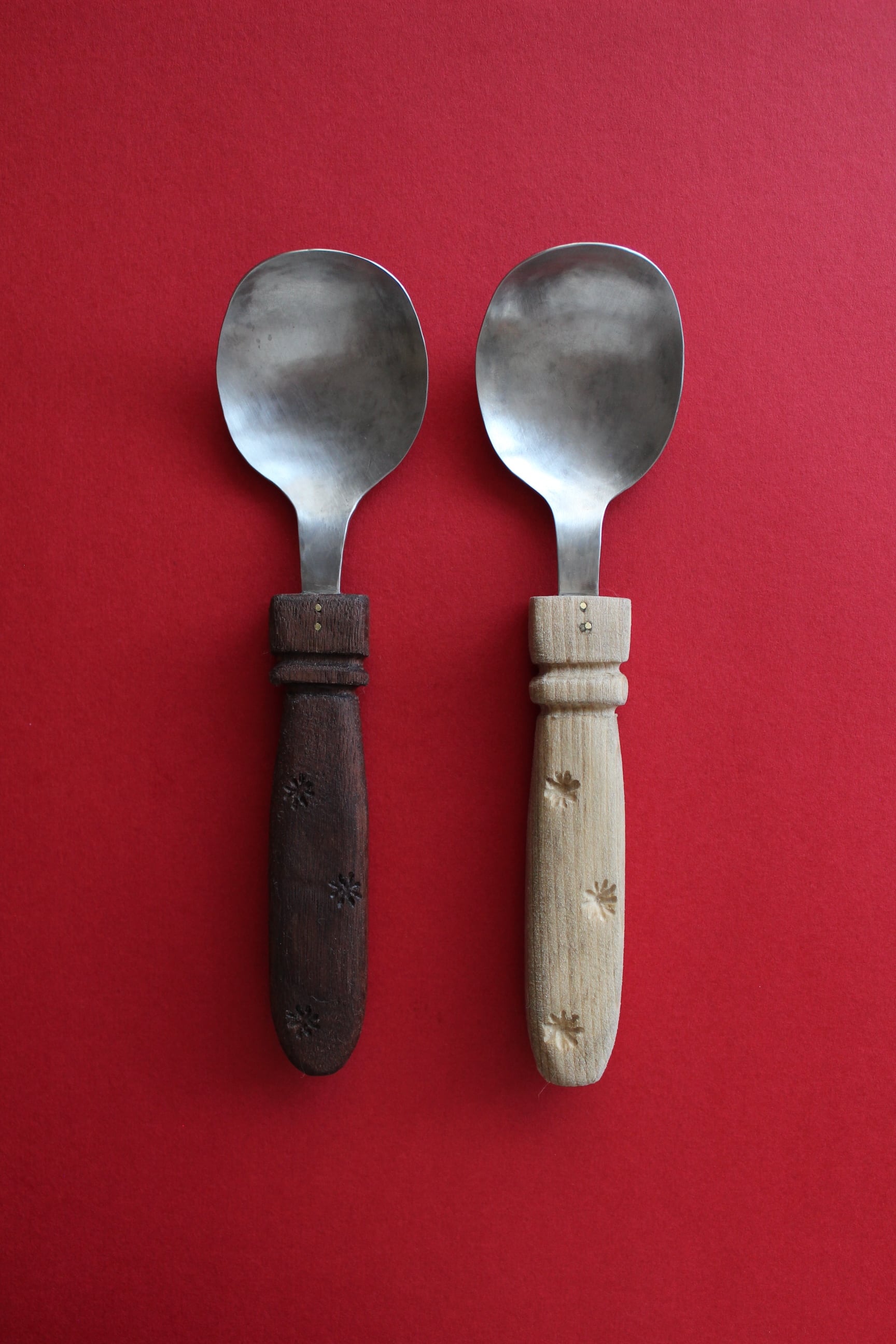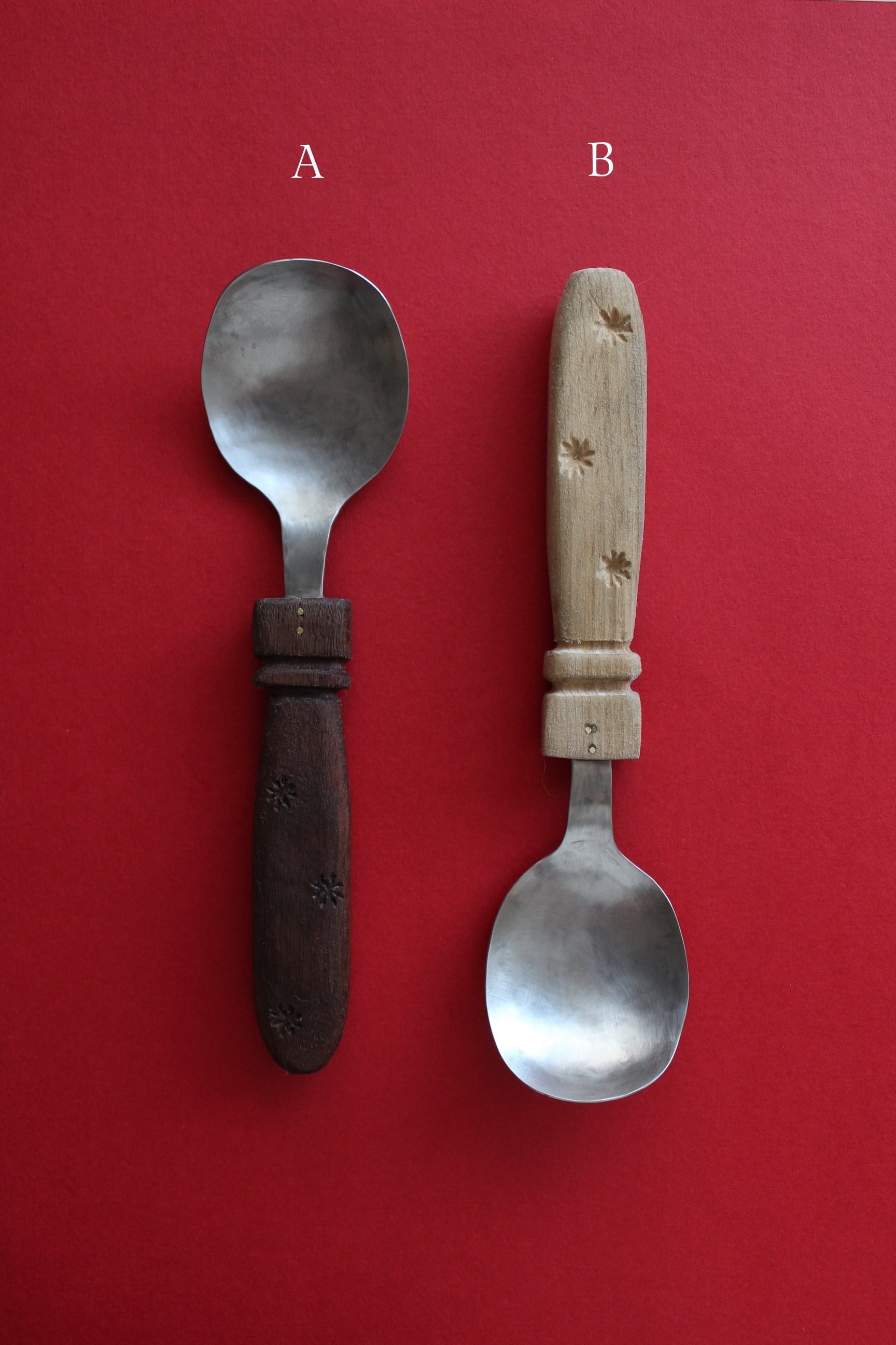 温もりを感じられる、ウッドハンドルを組み合わせたスプーン。