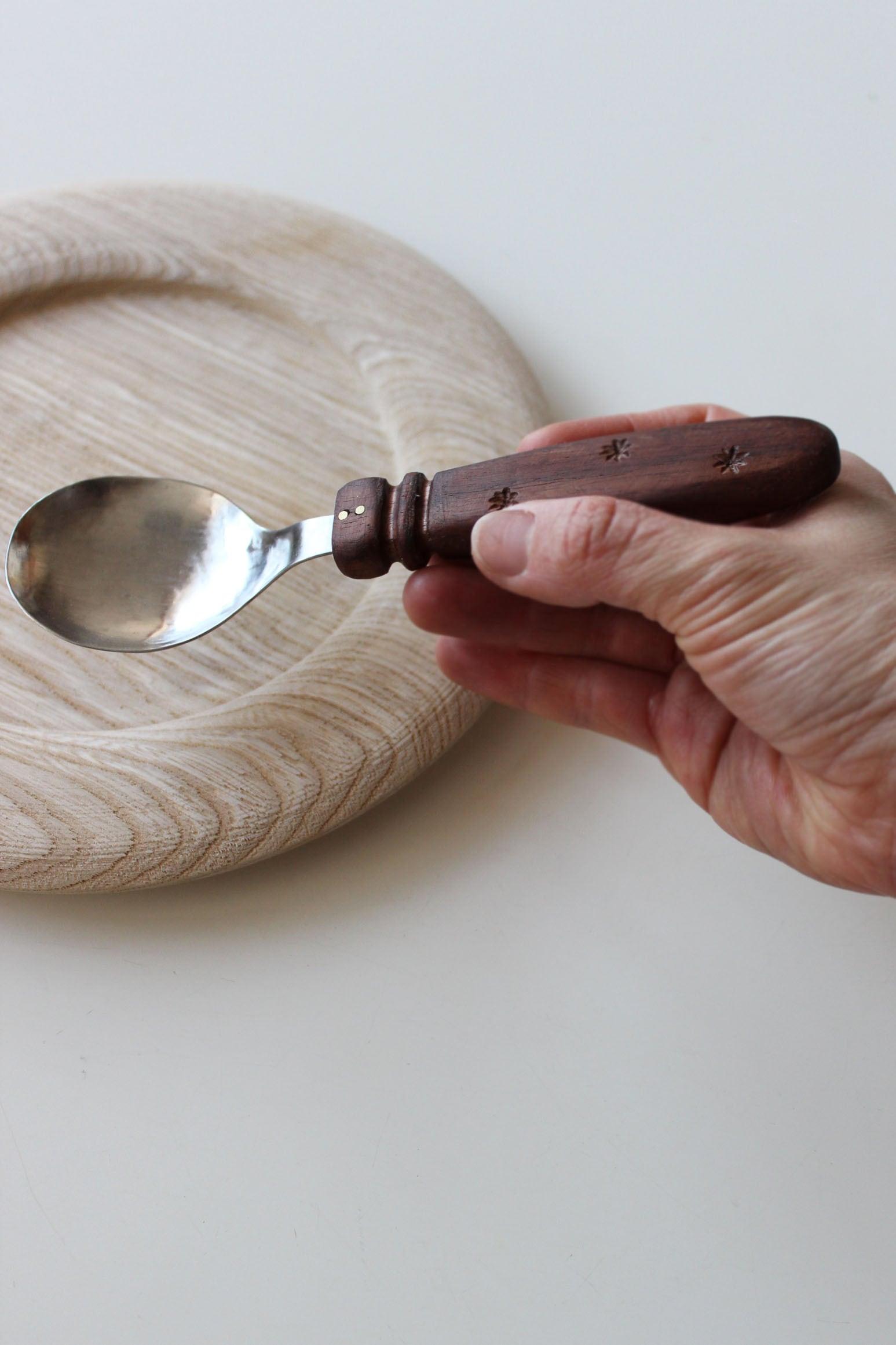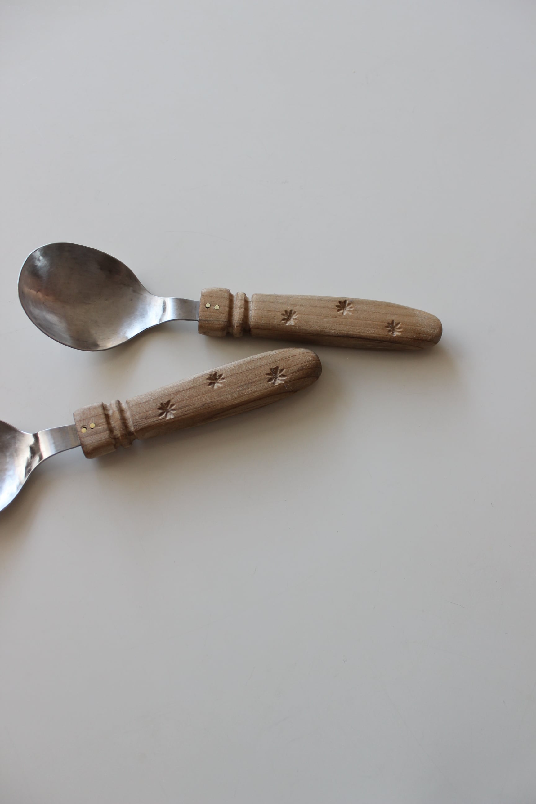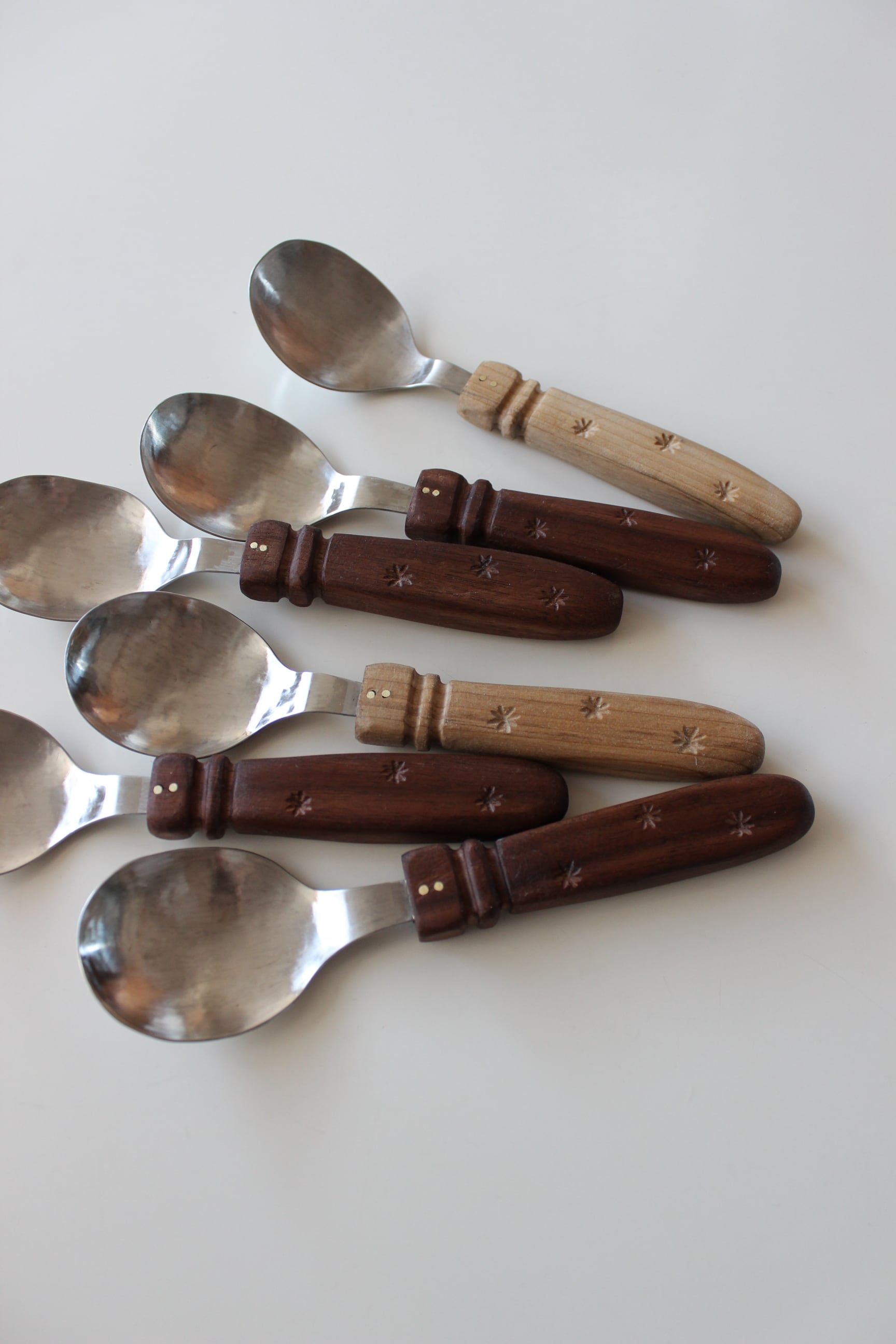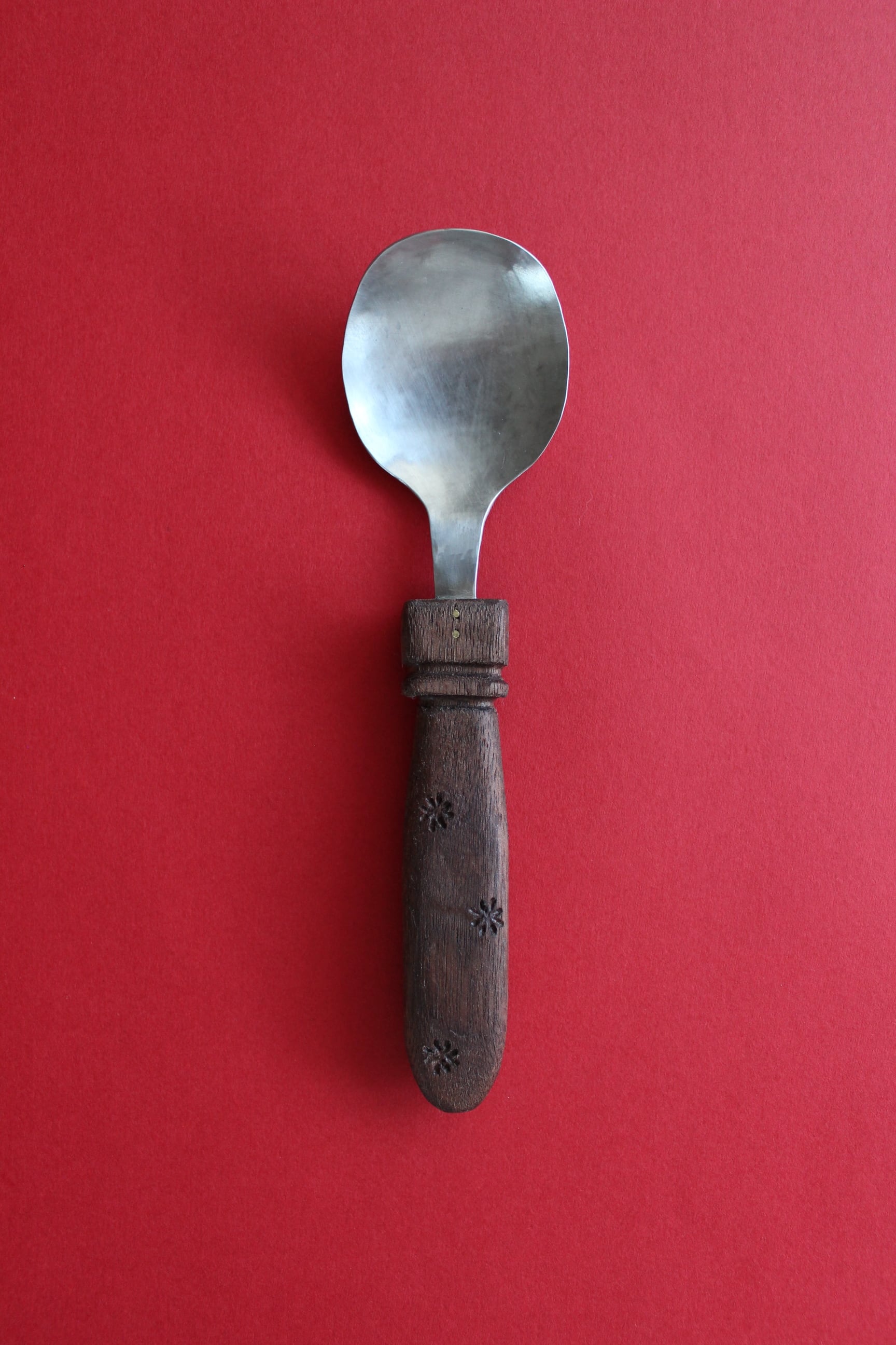 温もりを感じられる、ウッドハンドルを組み合わせたスプーン。