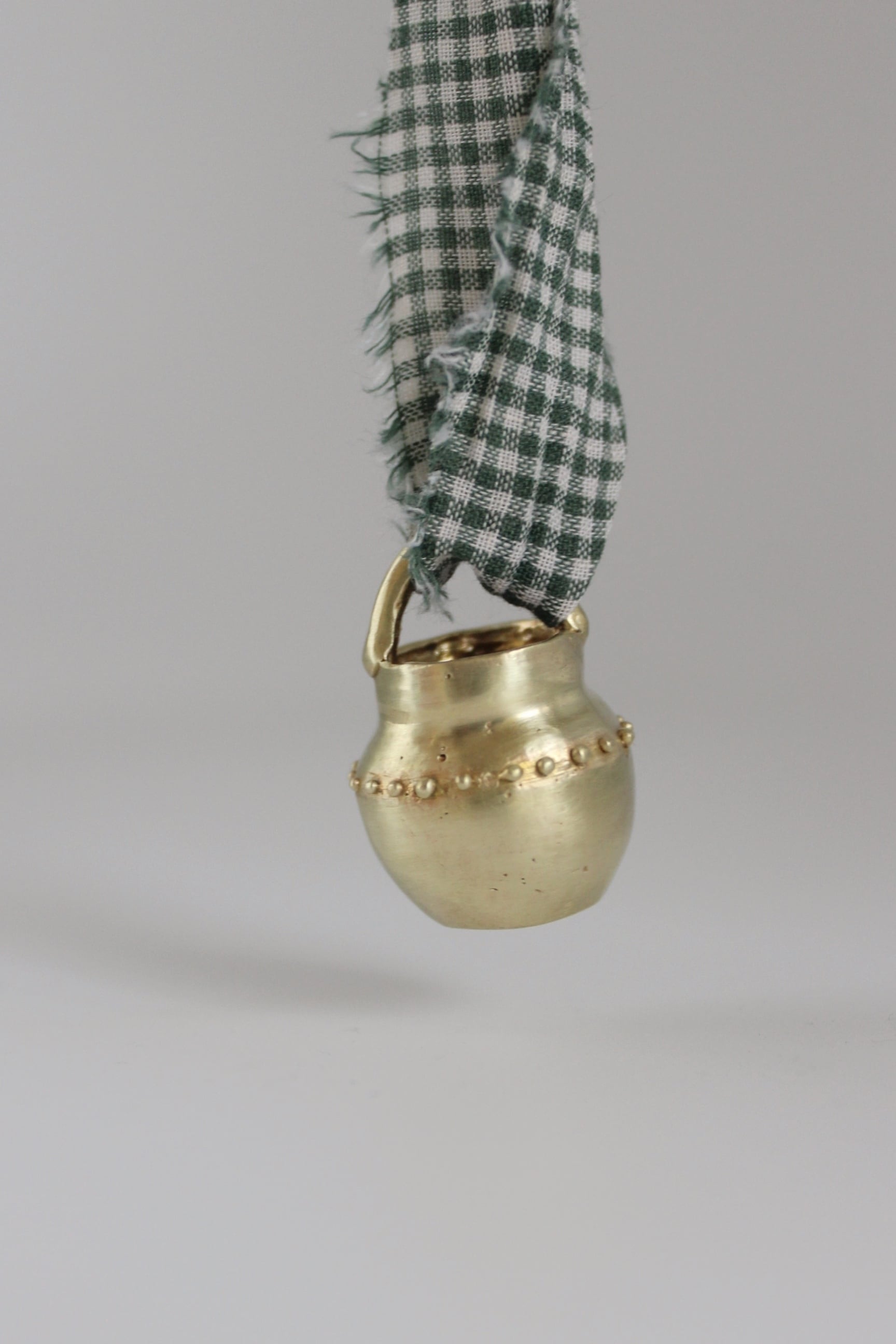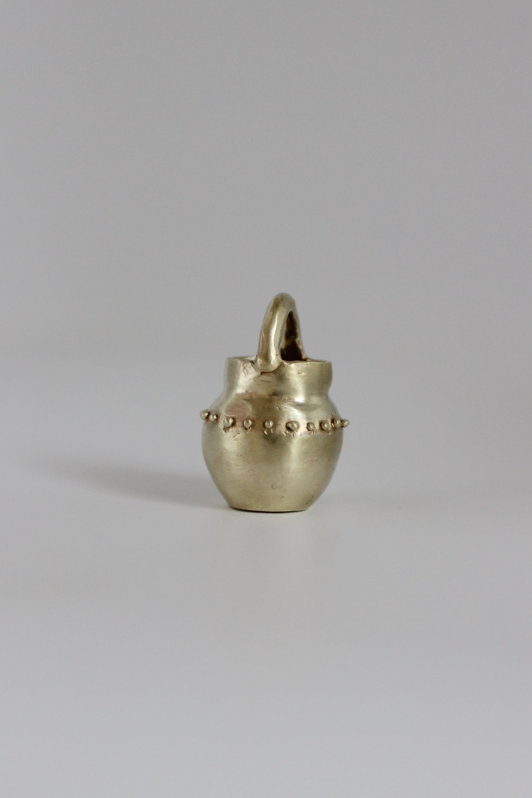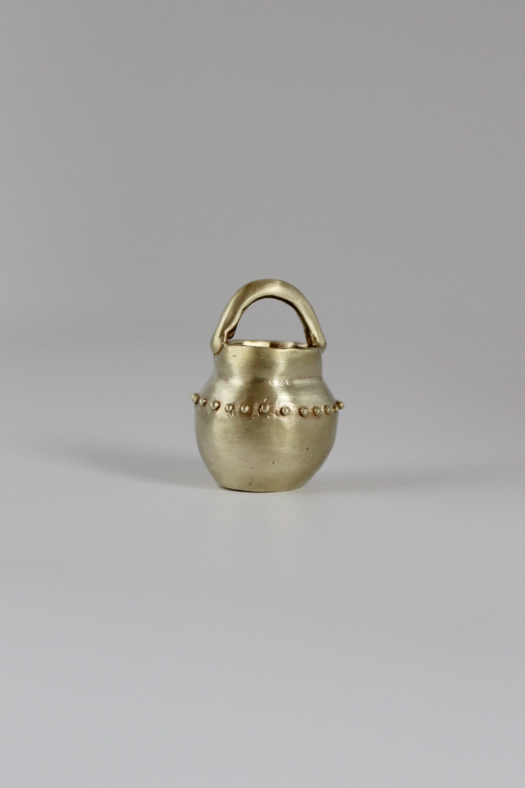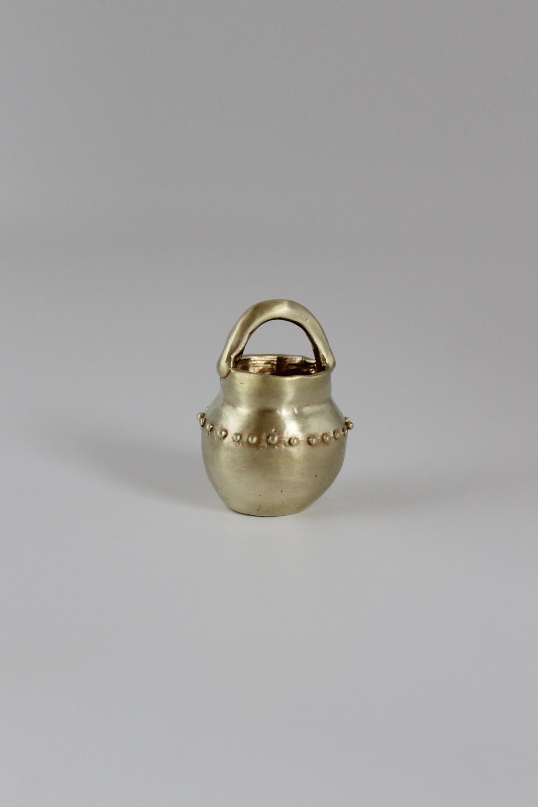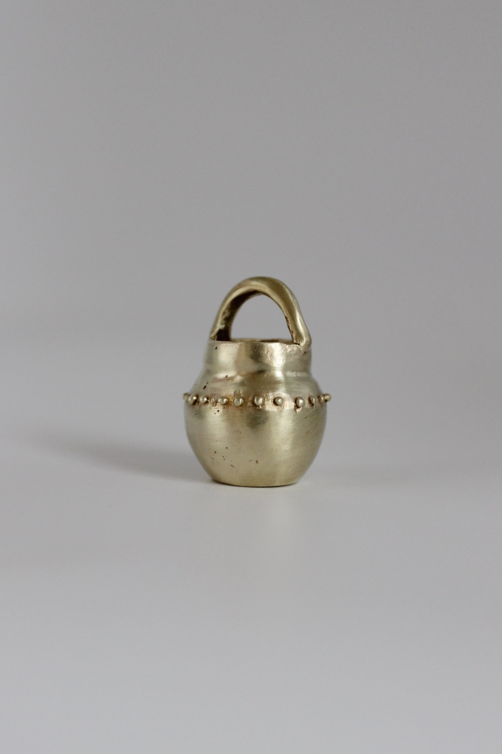 キュノワールやムスティエ、西洋陶器から着想を得てお作りした壺のミニミニオブジェ。 持ち手部分に気に入りのリボンを結んで壁やバックにぶら下げたり。 もちろんそのままインテリアとしても。 中は空洞なので実際にお花を生けることもできます。 size 3 × 2 cm × 2 cm material 真鍮 ※リボンはつきません