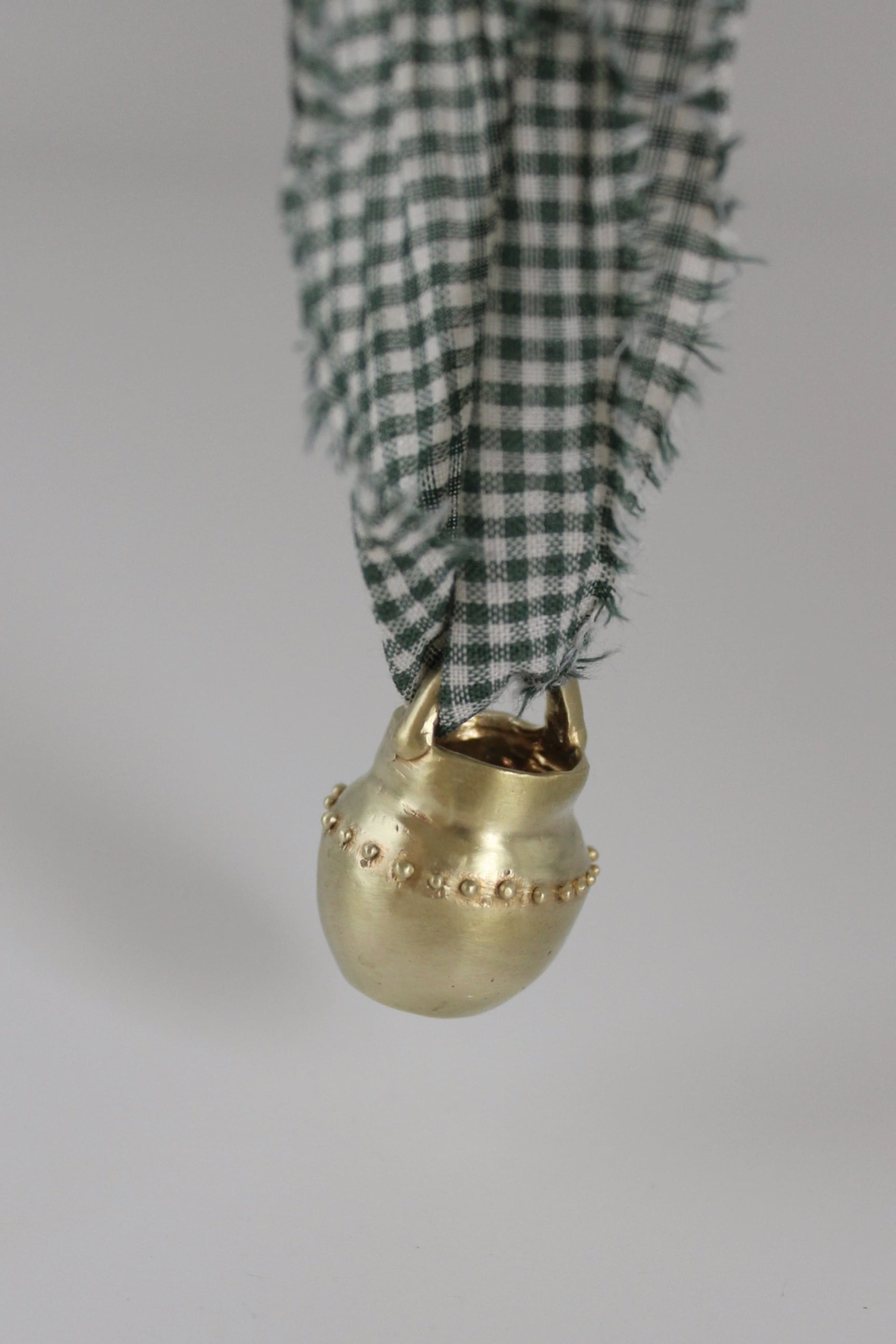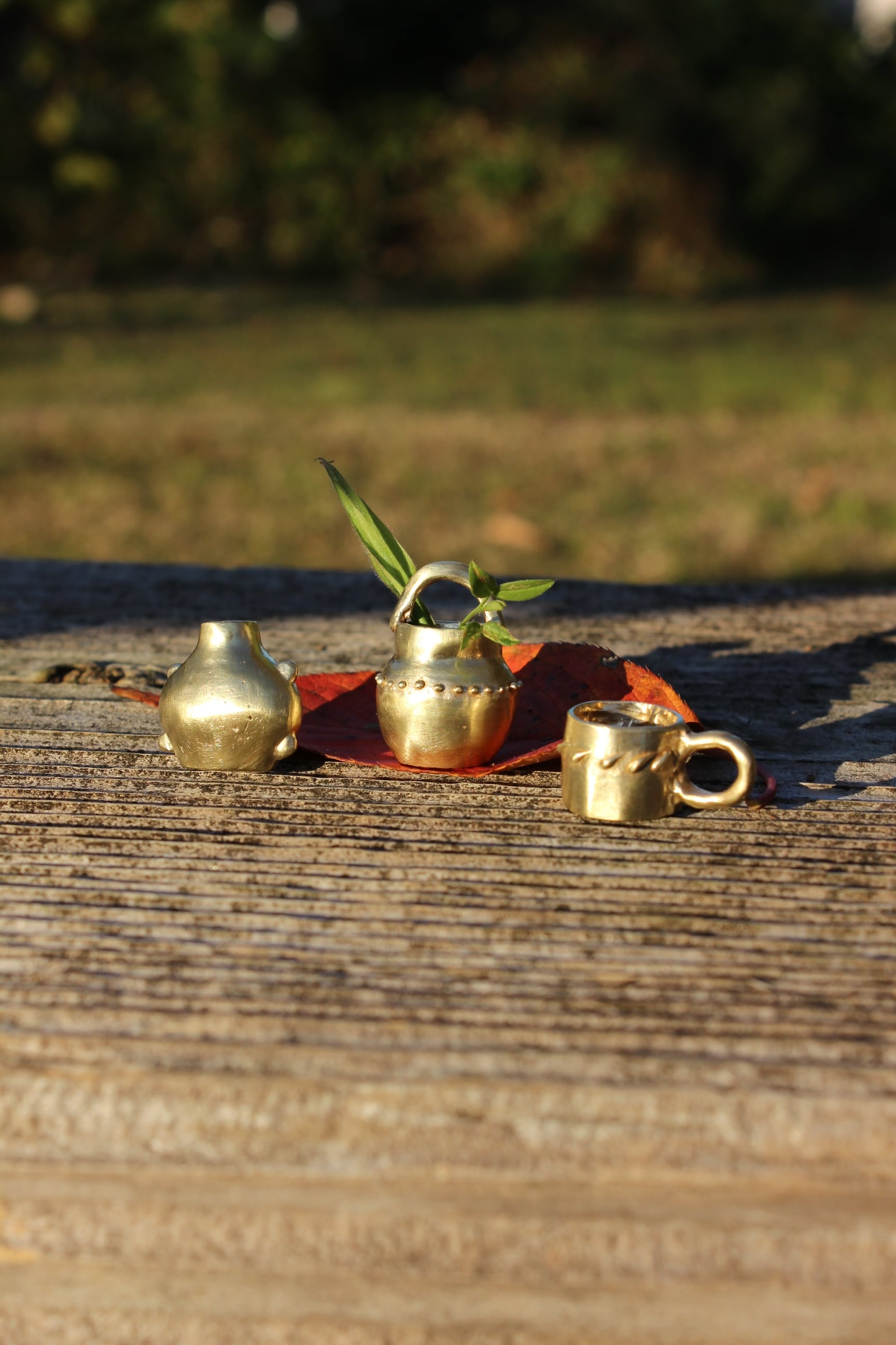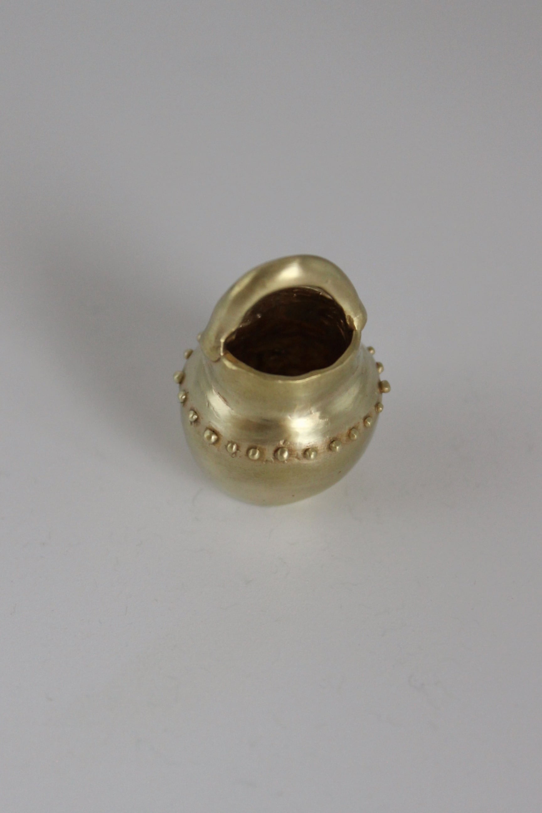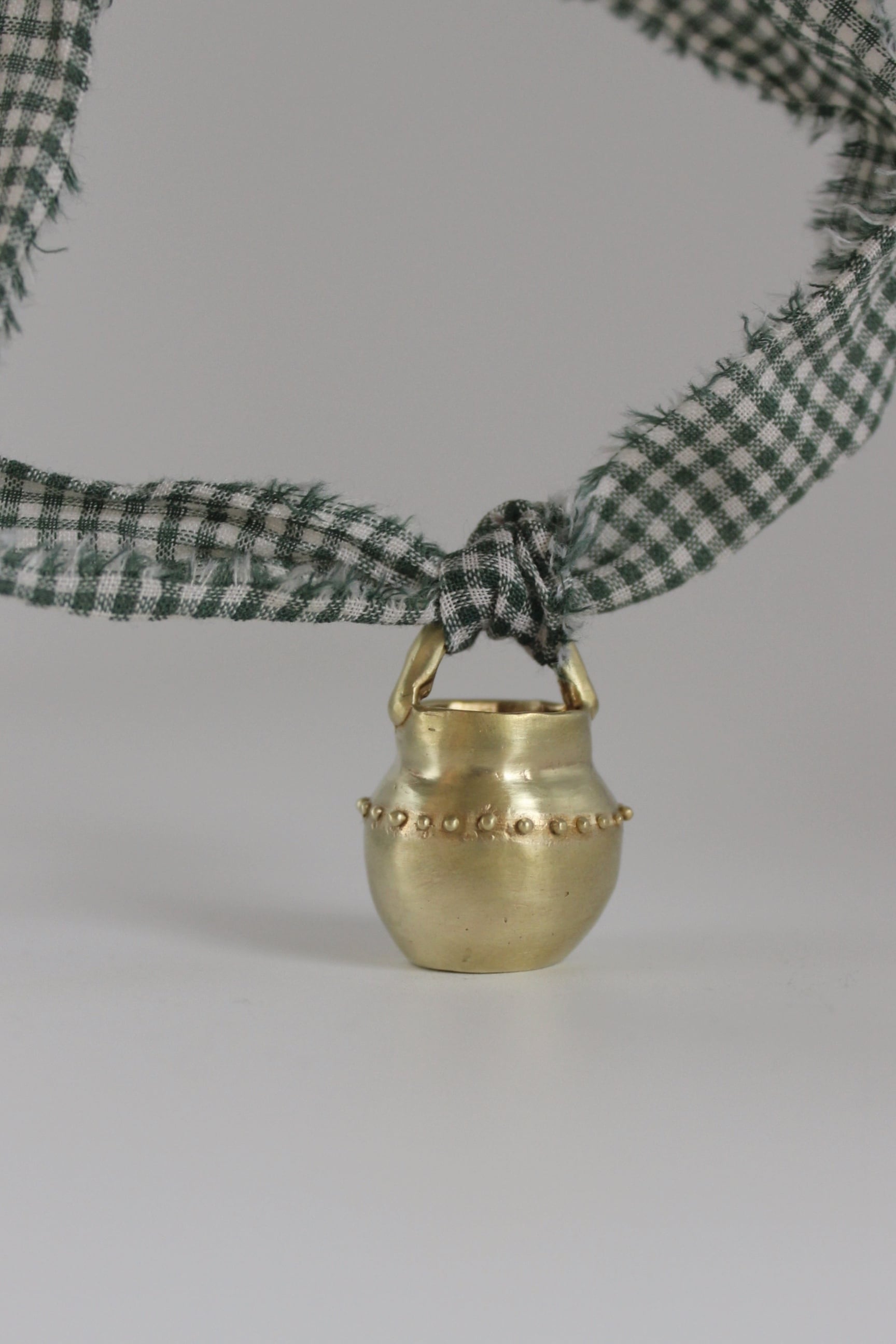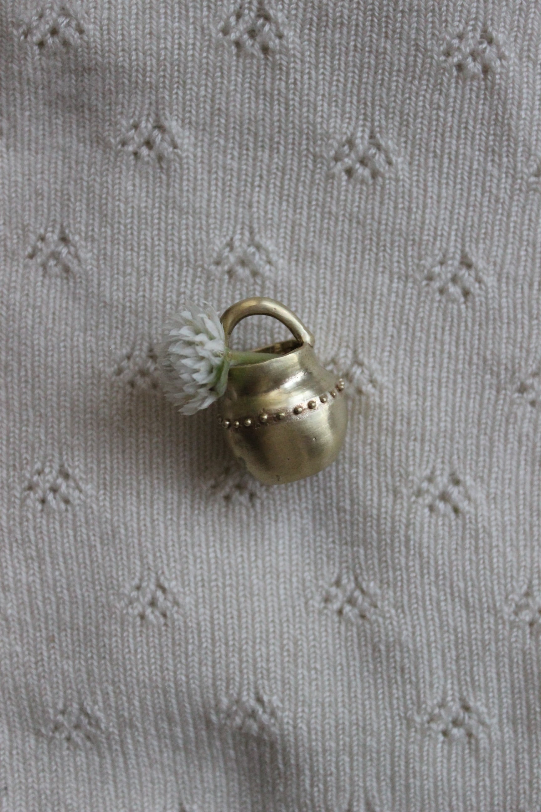 キュノワールやムスティエ、西洋陶器から着想を得てお作りした壺のミニミニオブジェ。 持ち手部分に気に入りのリボンを結んで壁やバックにぶら下げたり。 もちろんそのままインテリアとしても。 中は空洞なので実際にお花を生けることもできます。 size 3 × 2 cm × 2 cm material 真鍮 ※リボンはつきません