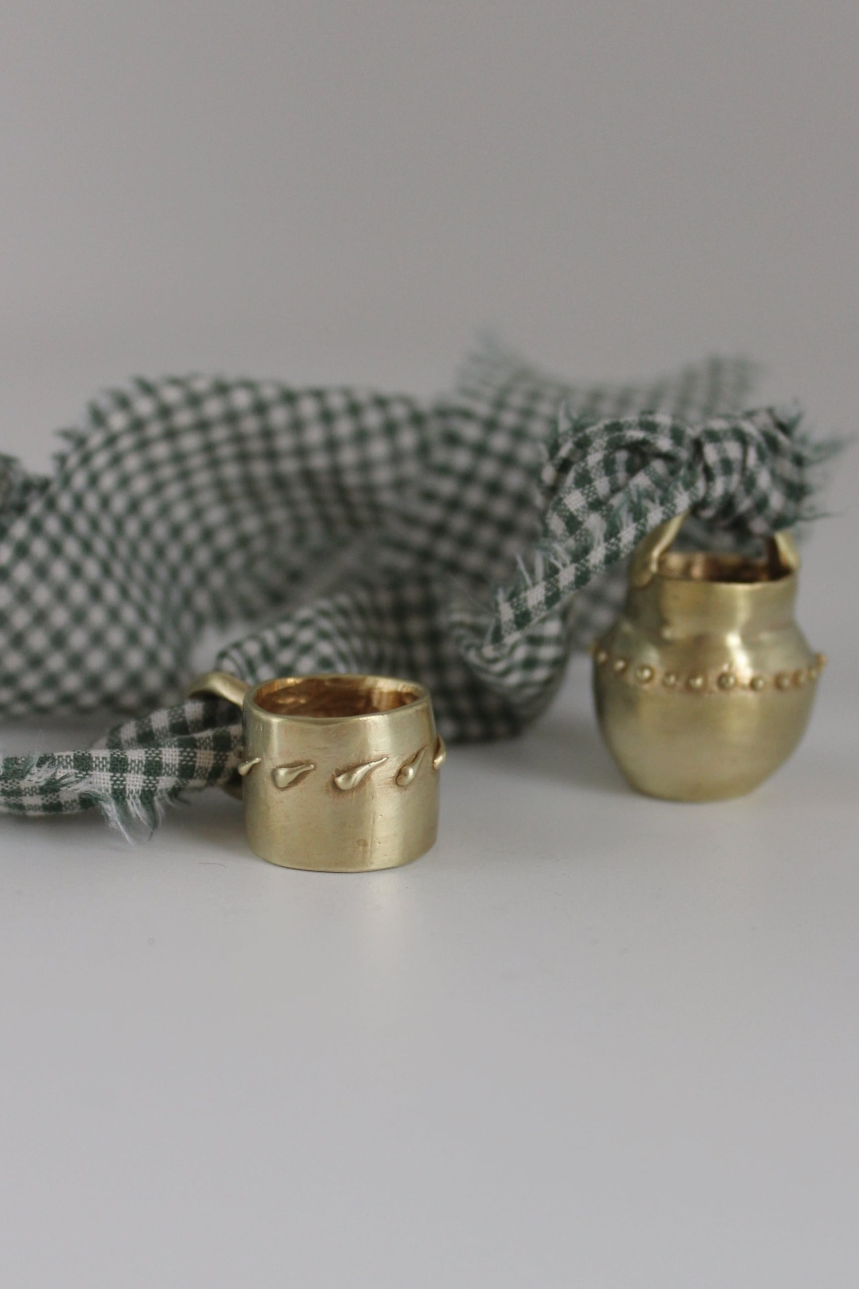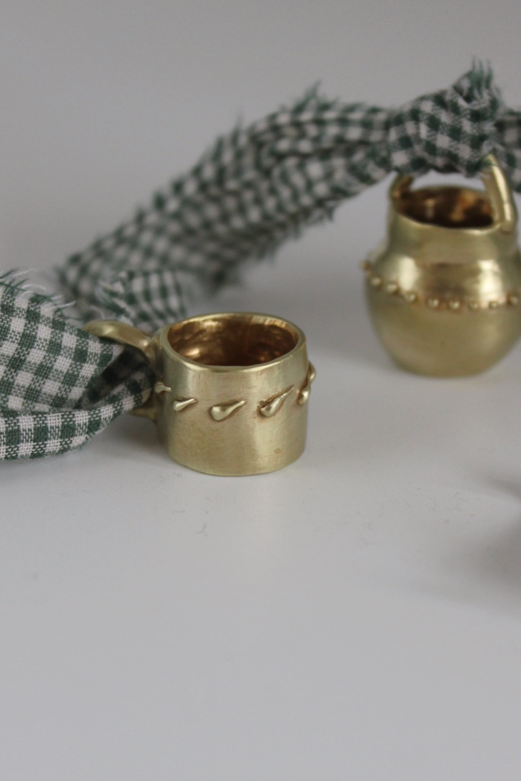 キュノワールやムスティエ、西洋陶器から着想を得てお作りしたカップのミニミニオブジェ。 取手部分に気に入りのリボンを結んで壁やバックにぶら下げたり。 もちろんそのままインテリアとしても。 中は空洞なので実際にお花を生けることもできます。 size 3 × 1.5 cm × 1.5 cm material 真鍮 ※リボンはつきません