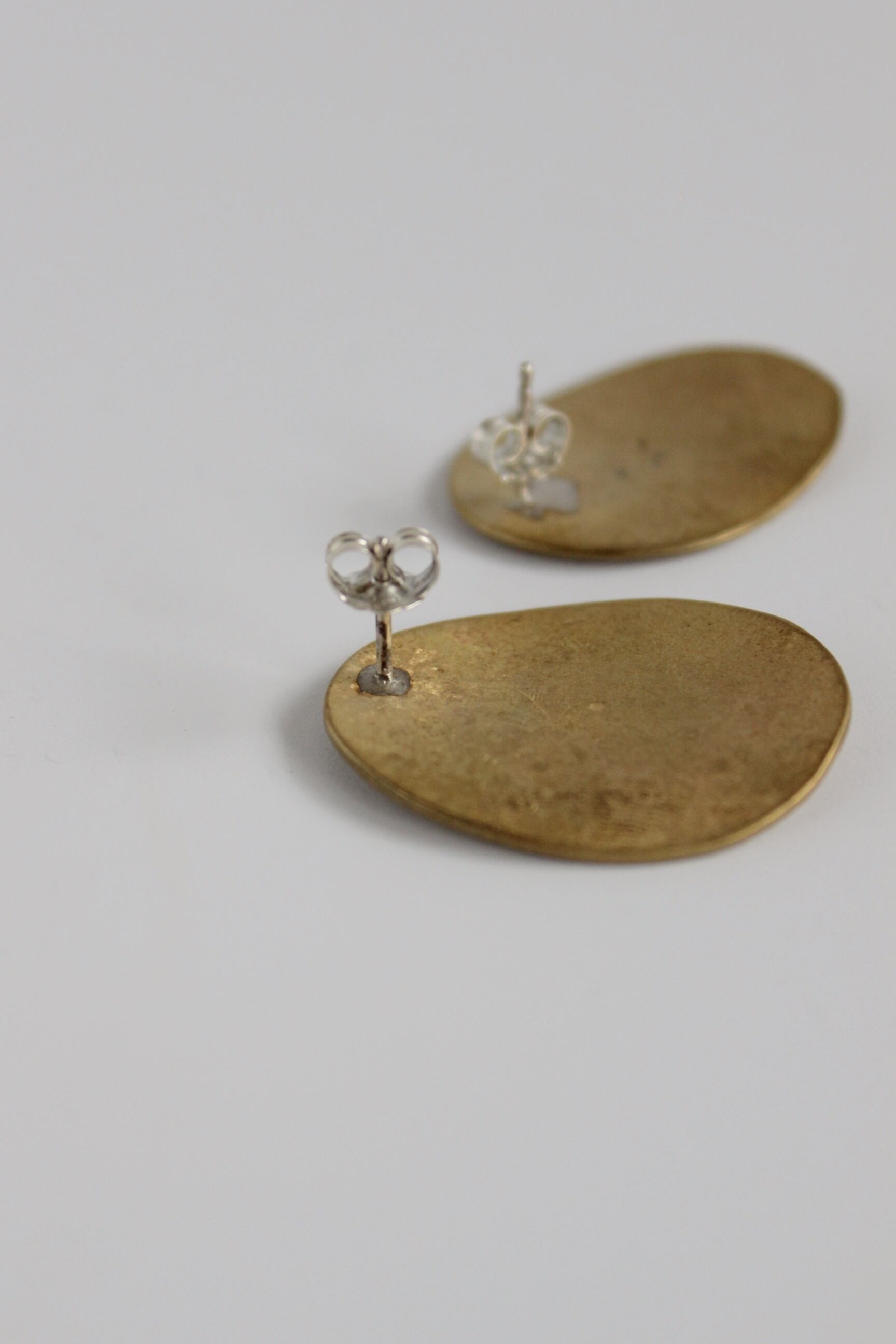 槌目の表情が美しいピアス シンプルながらも耳元で上品な輝きを放ってくれます。 size 2.5 × 2 cm material 真鍮、シルバー925