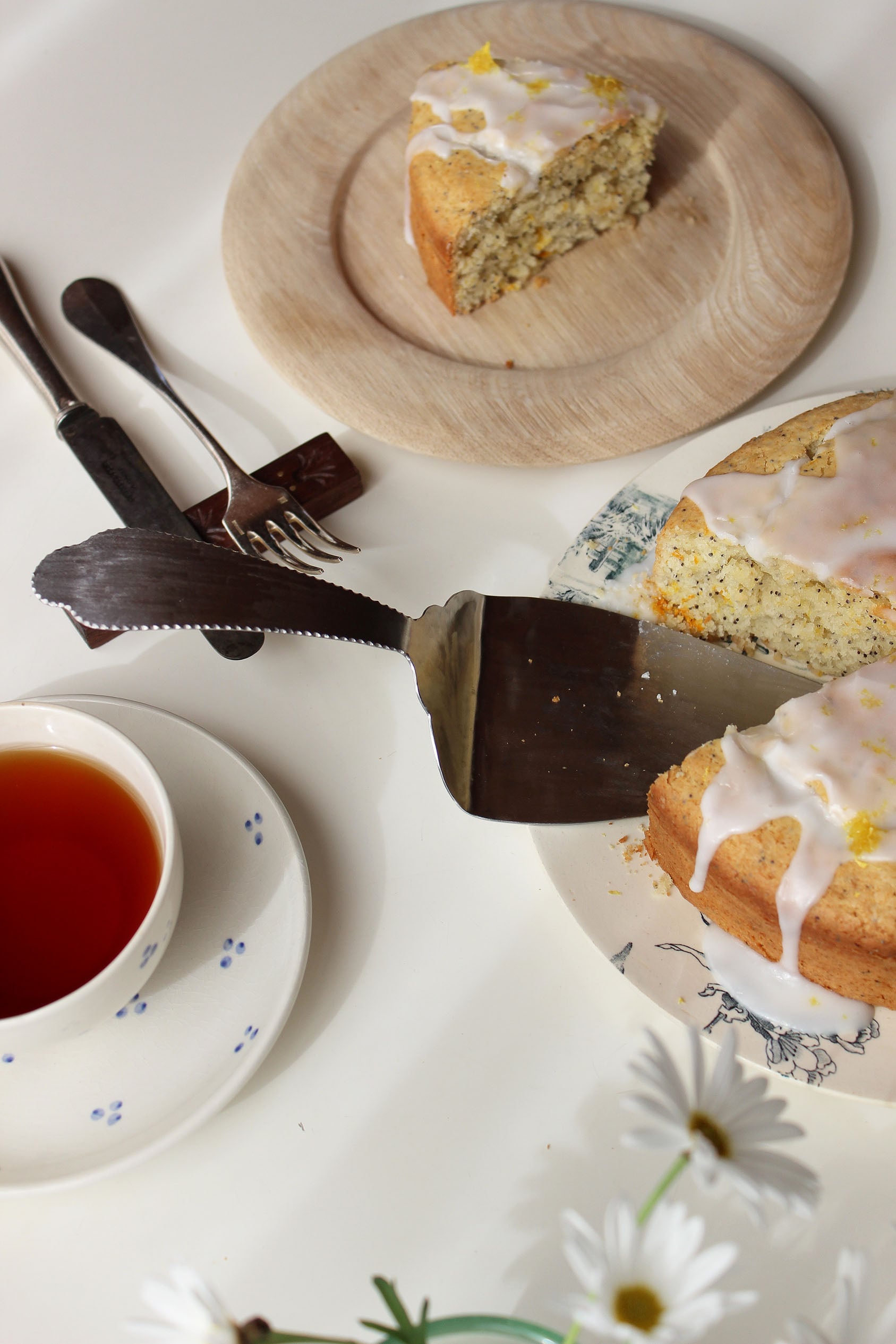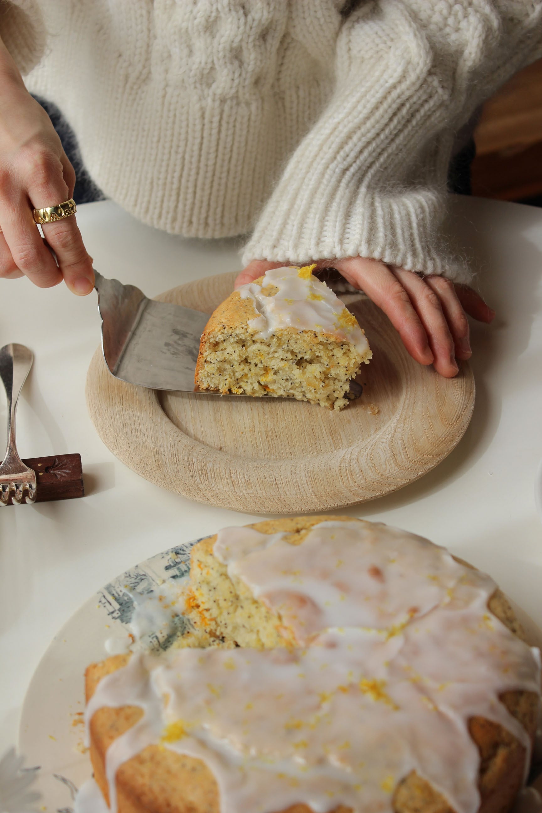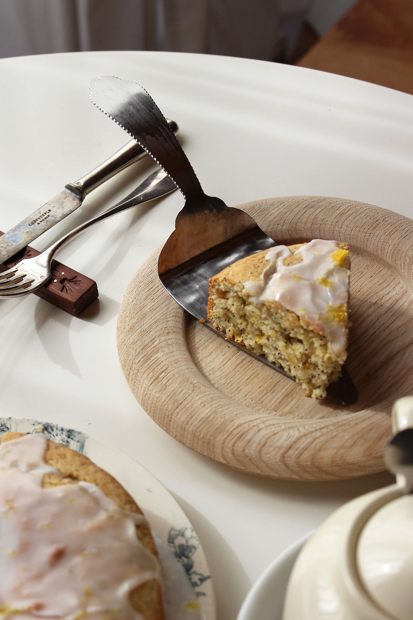 サーブ部分は広めに設定しているのでカットしたケーキが落下する心配もなく、各々の器へサーブすることができます。