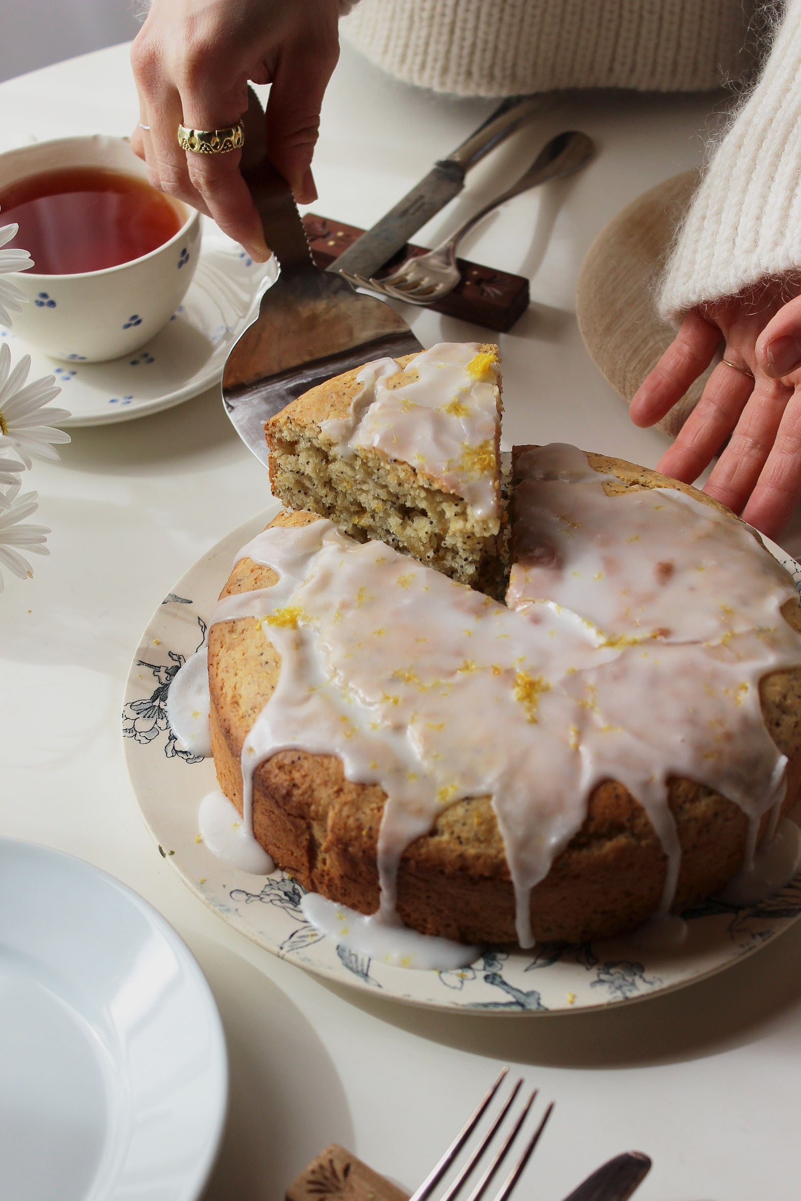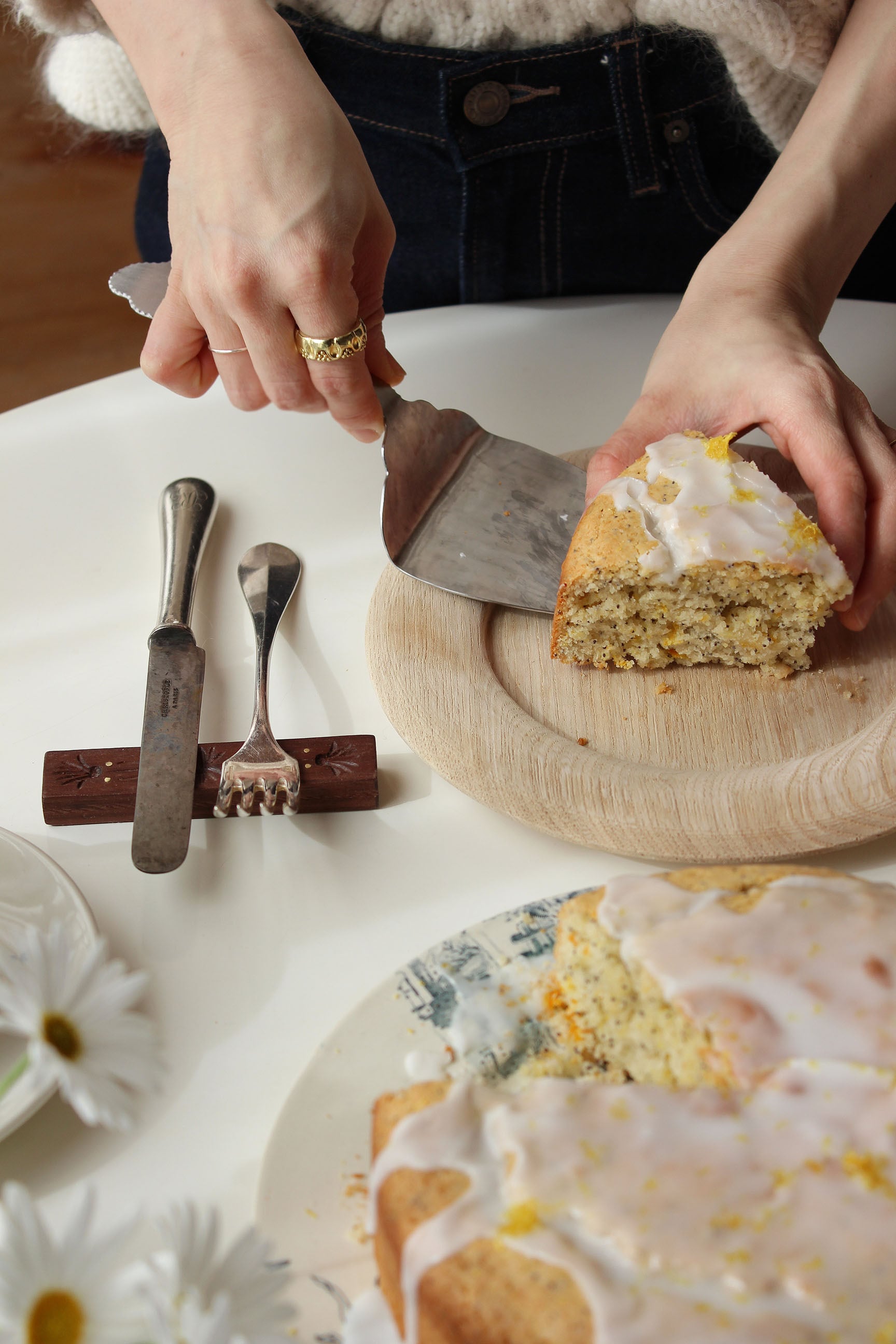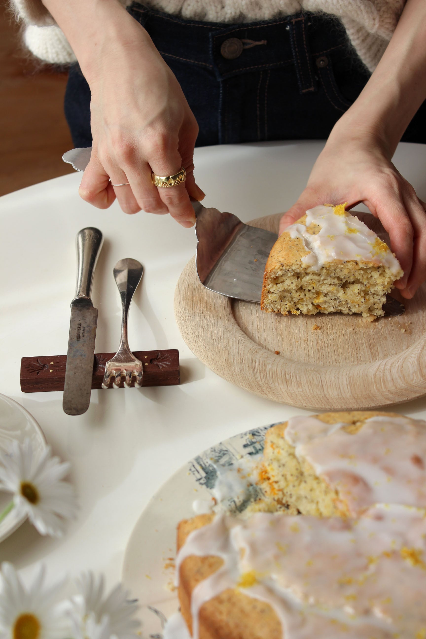 サーブ部分は広めに設定しているのでカットしたケーキが落下する心配もなく、各々の器へサーブすることができます。