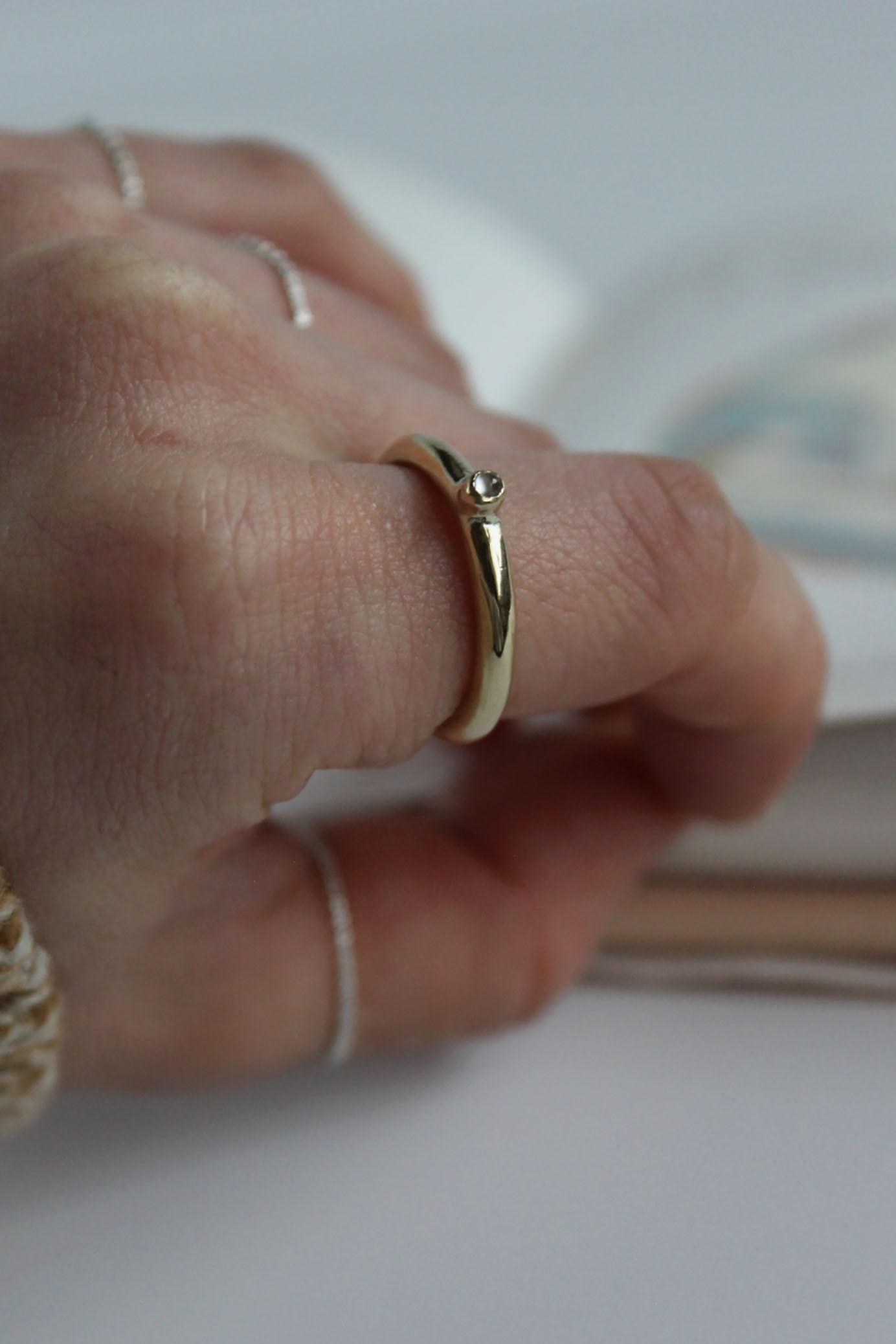細いリングと合わせていただくとより一層美しさが際立ちます。