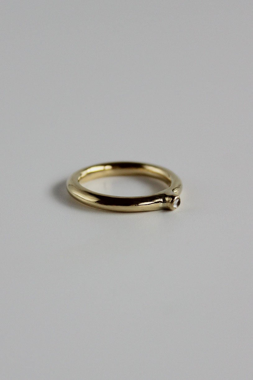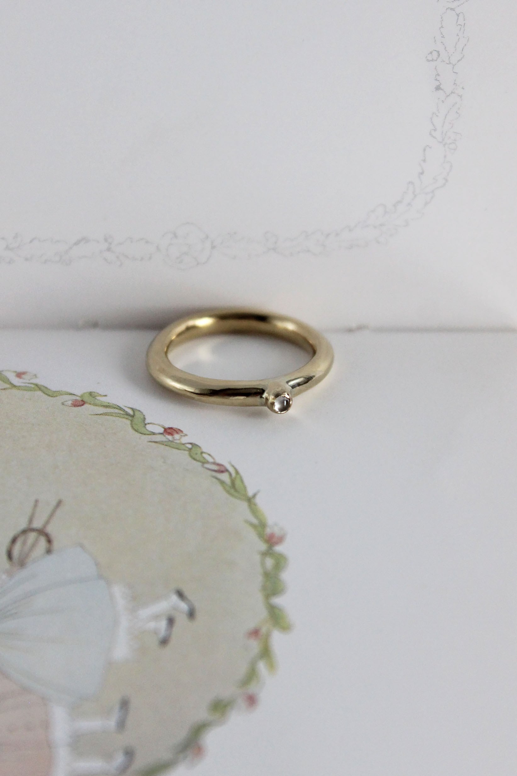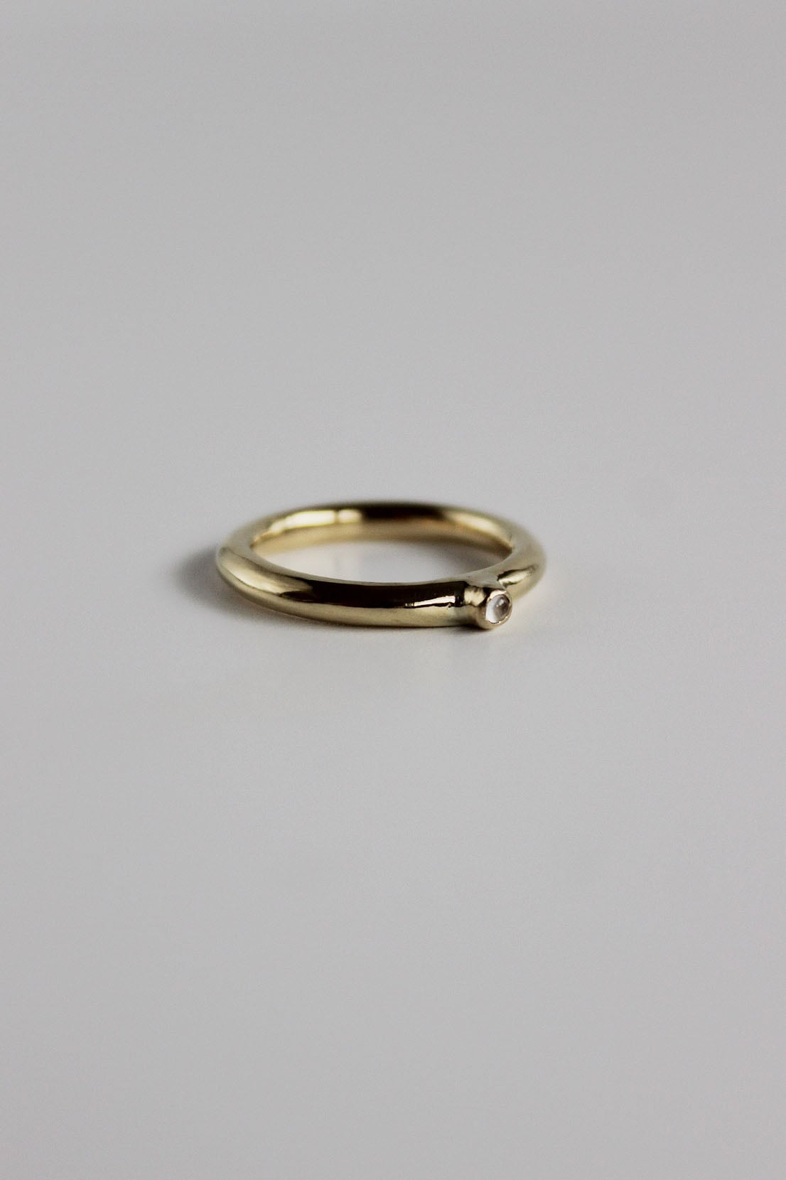 適度な存在感を放ってくれる3mm幅のリングに小さなムーンストーンを丁寧に閉じ込めました。