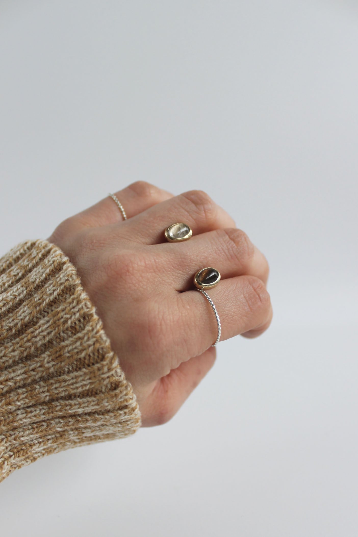 素材 : 真鍮、ルチレイテッドクォーツ、スモーキークオーツ