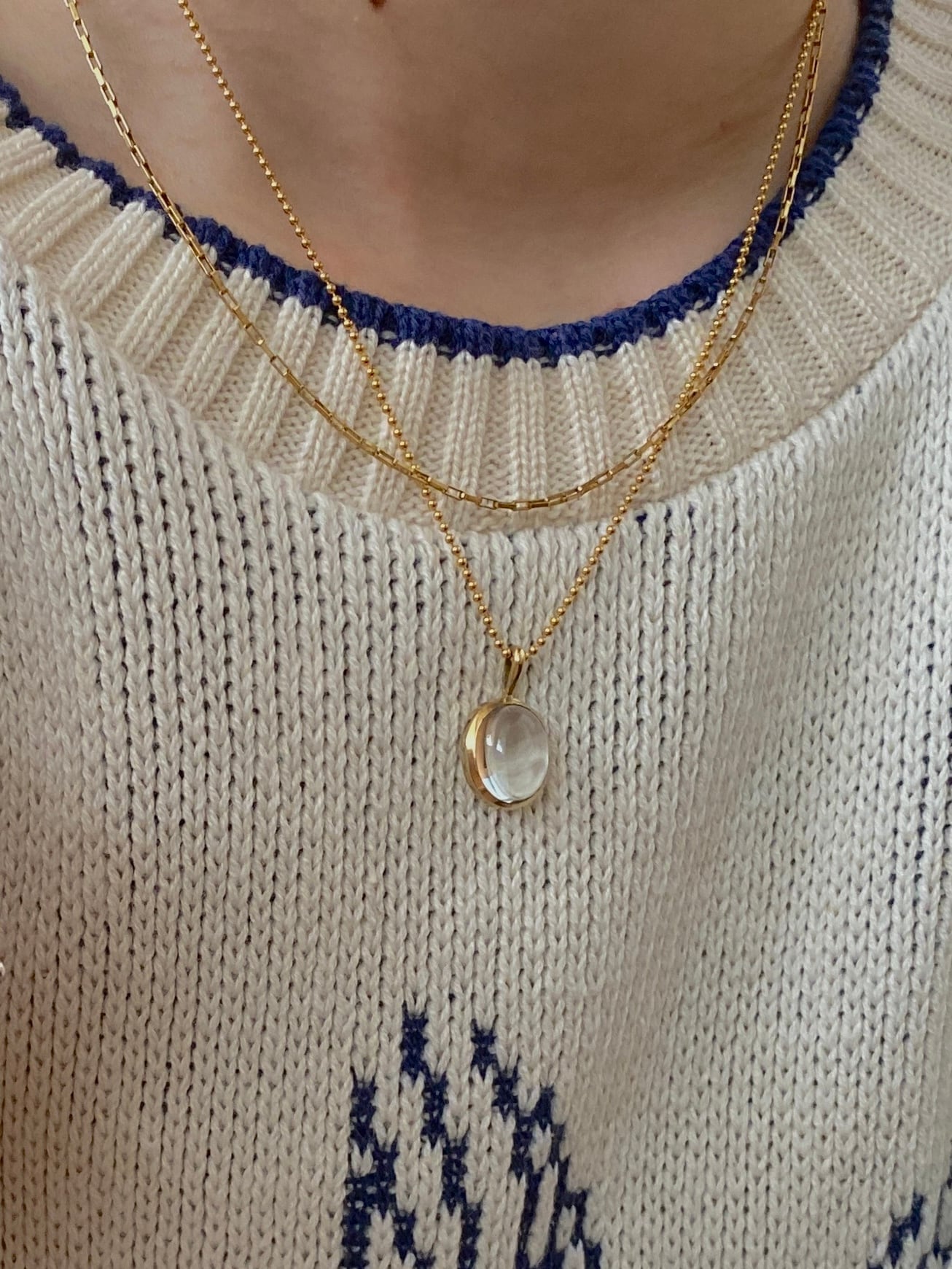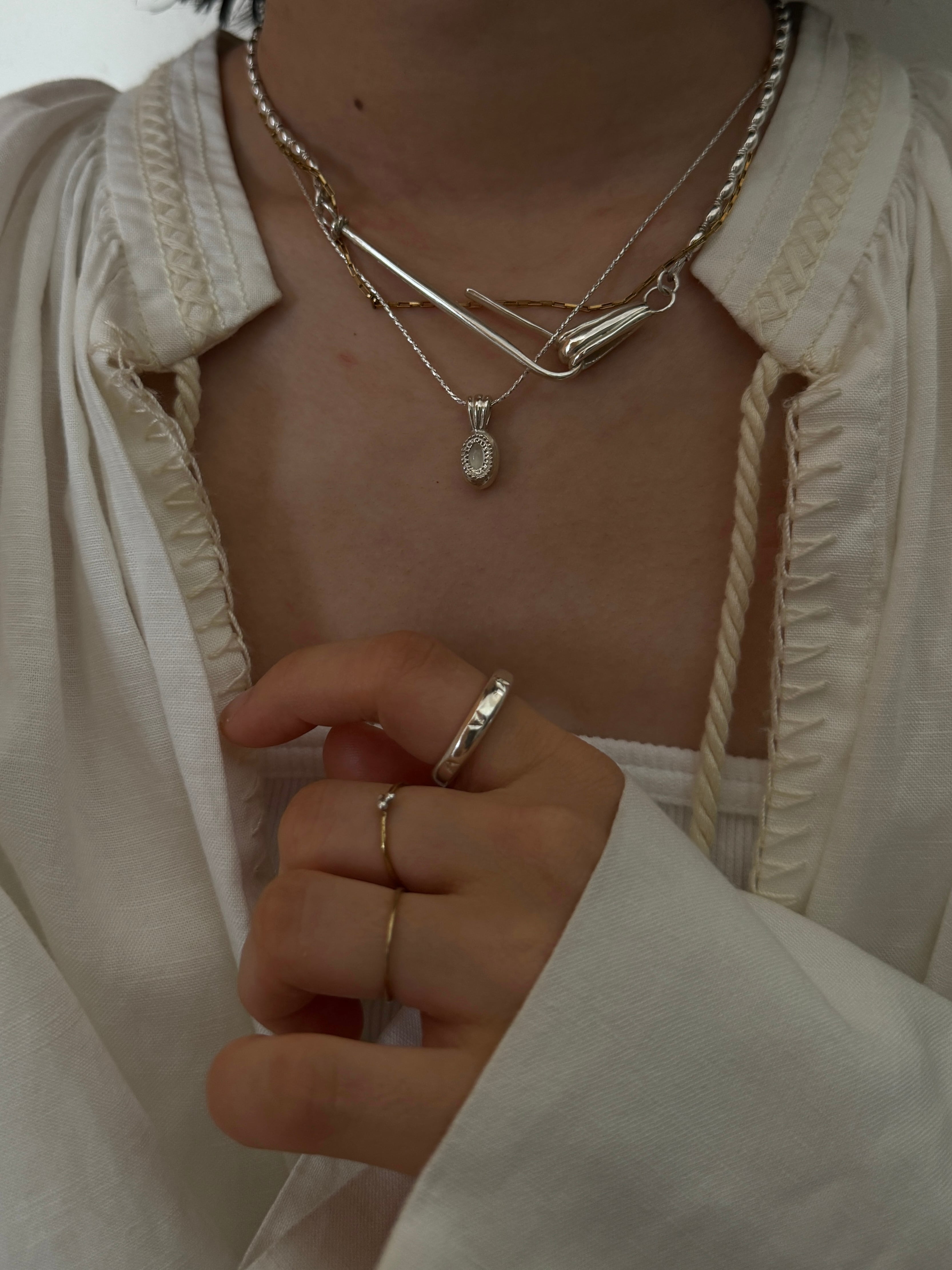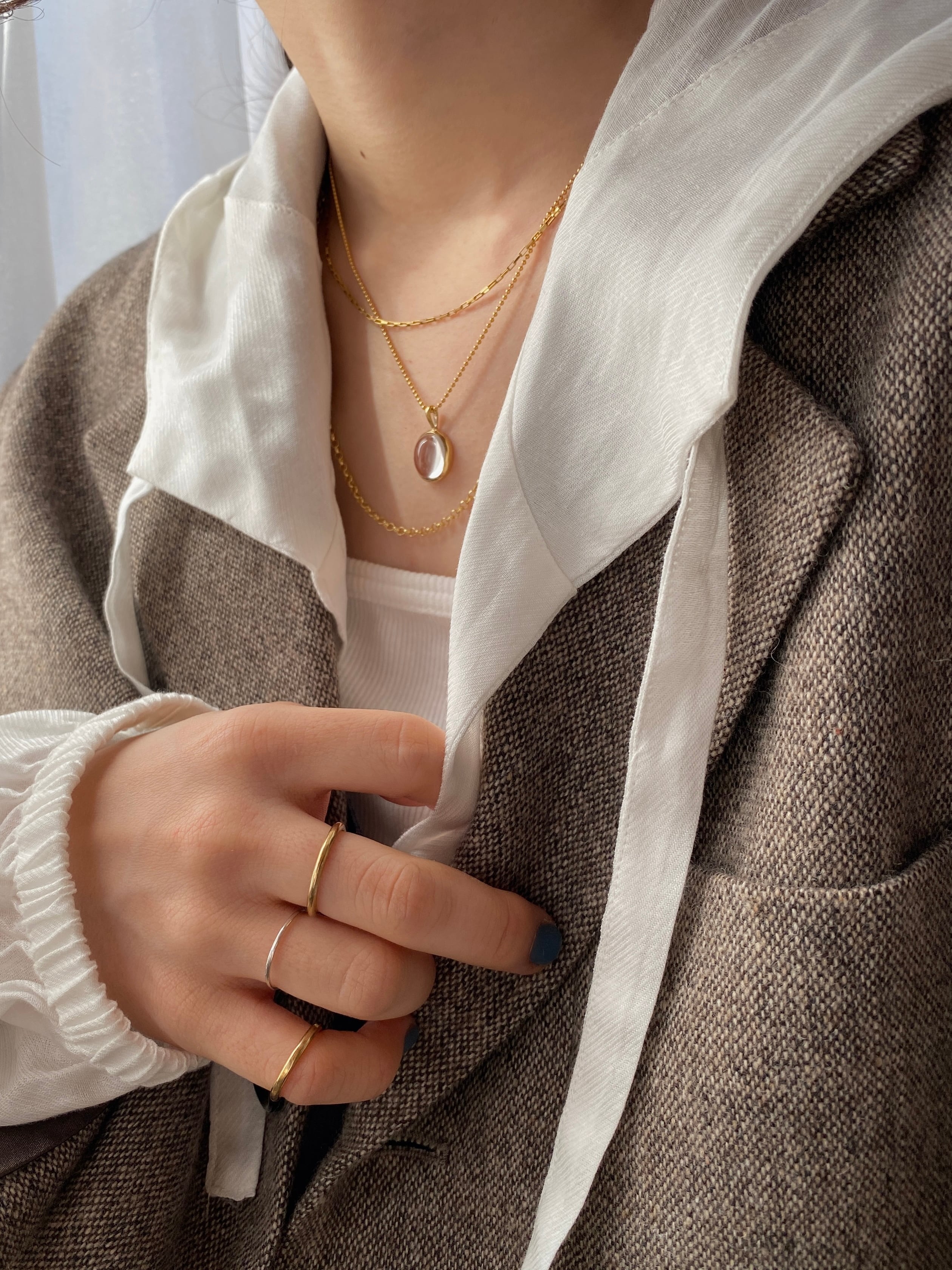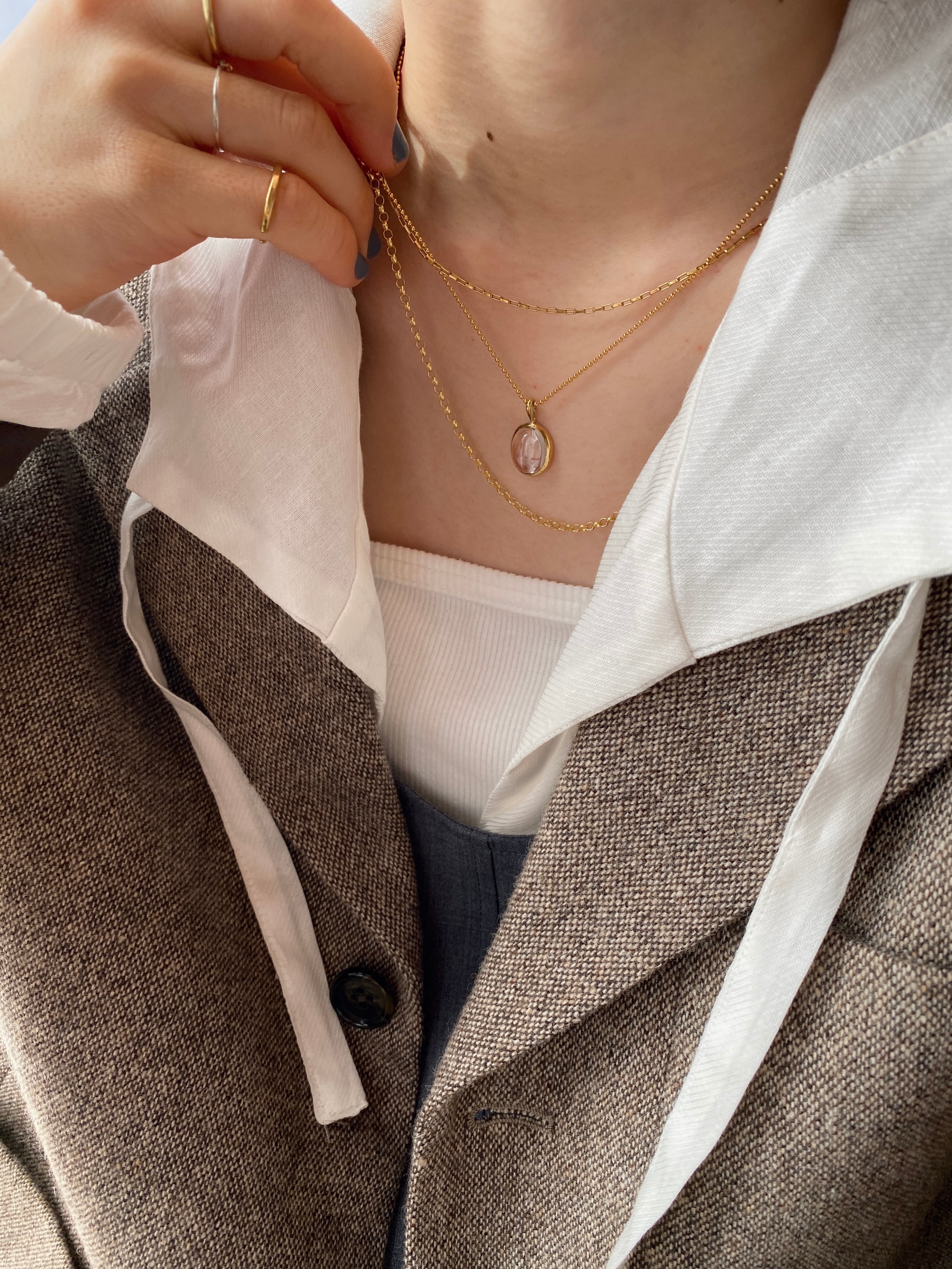 細身のチェーンなので、pearl necklace や tsubu necklace との重ね付けもおすすめです