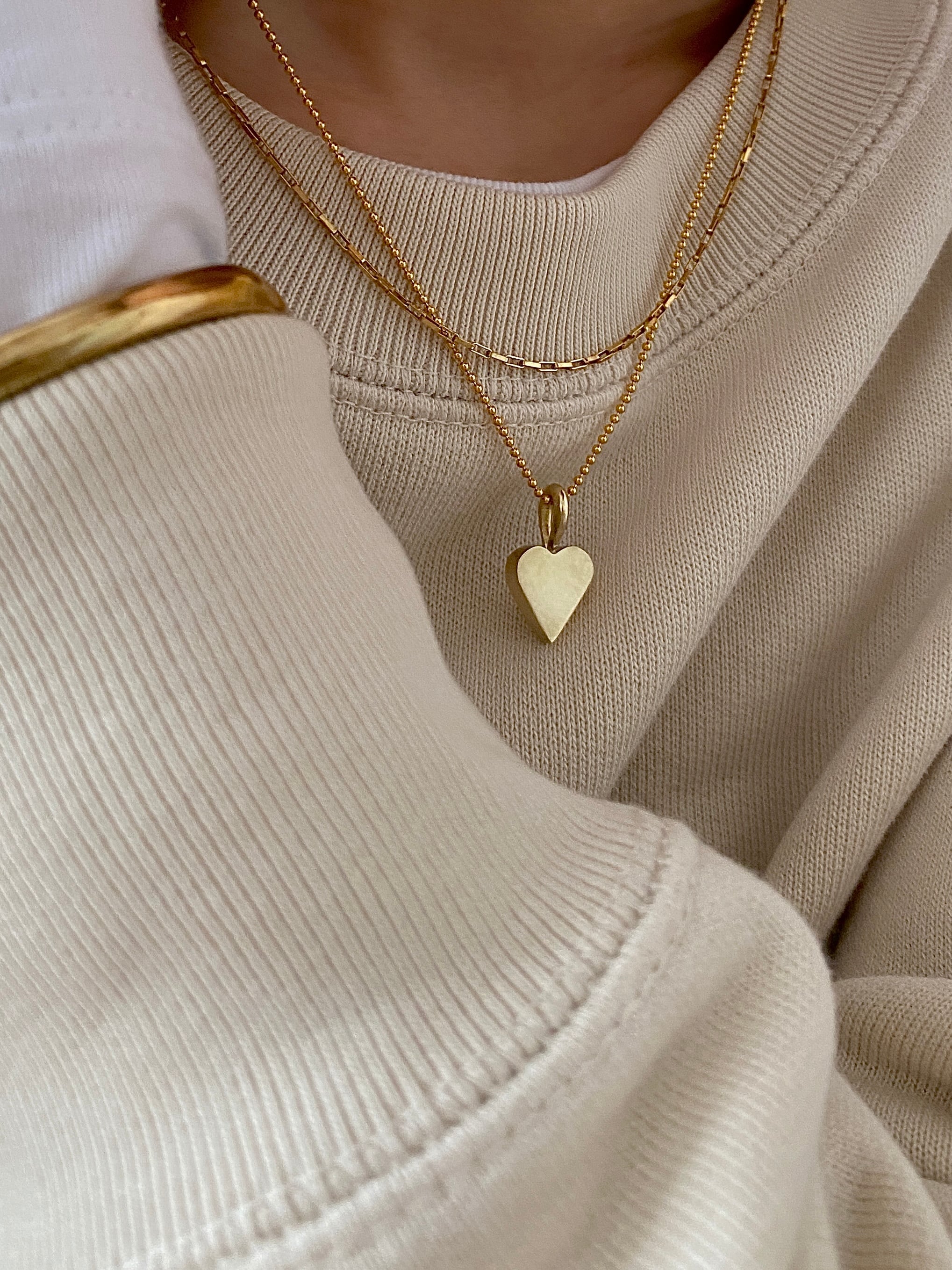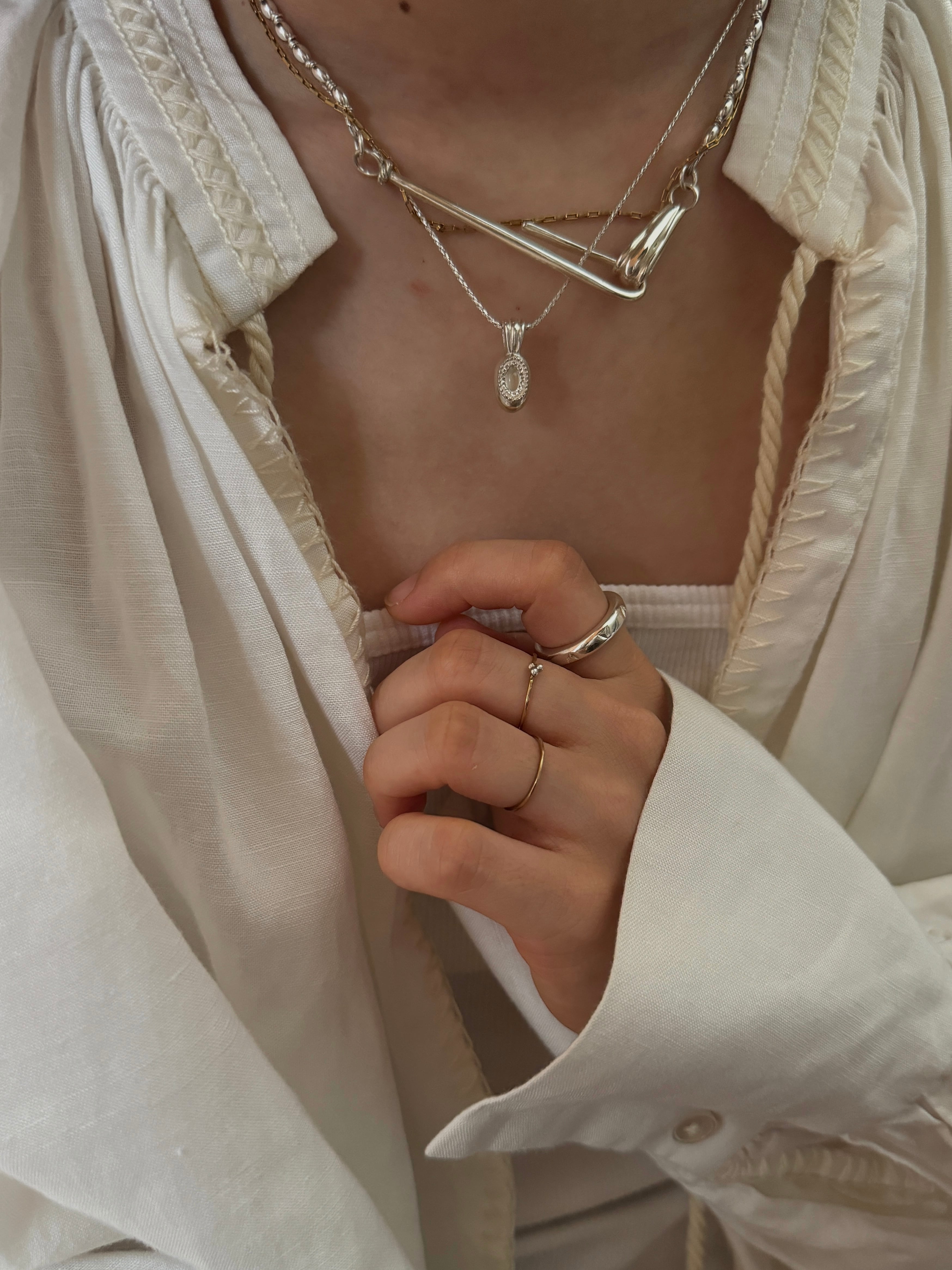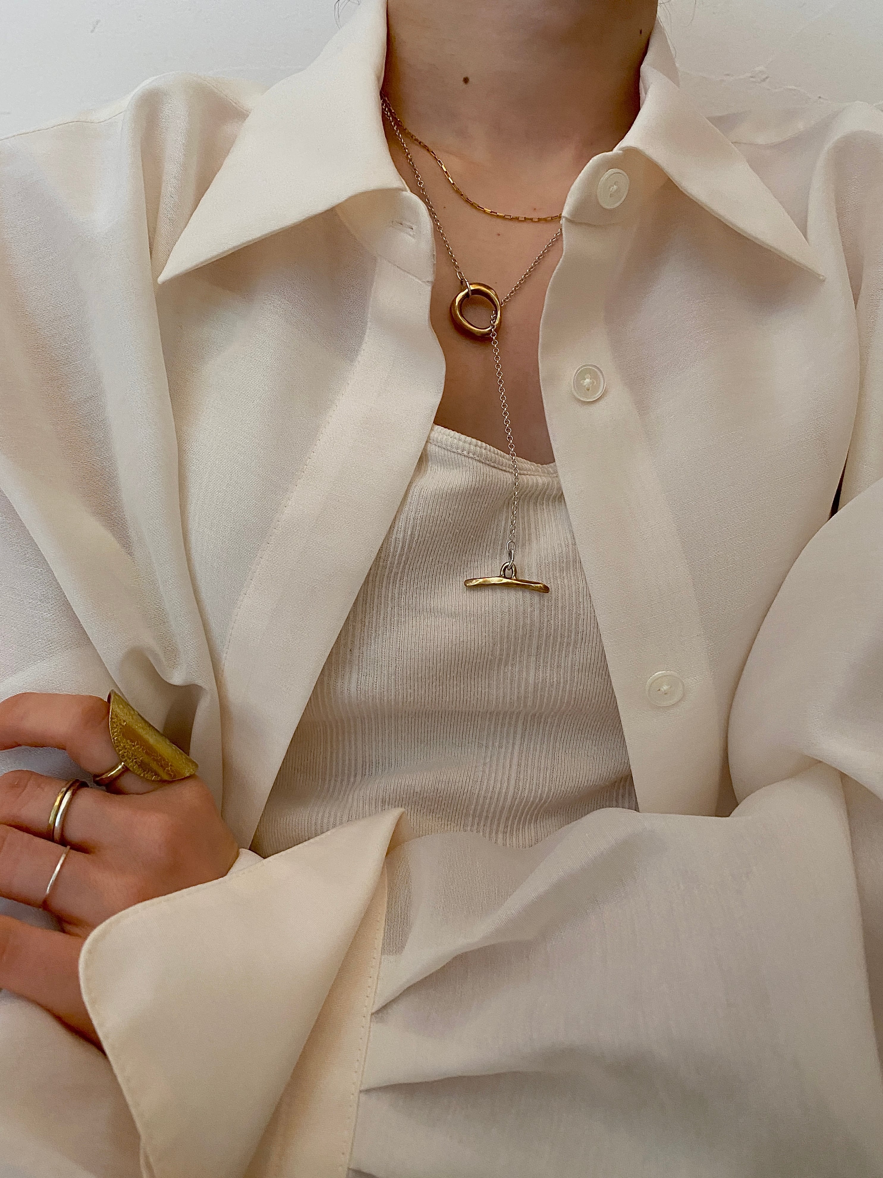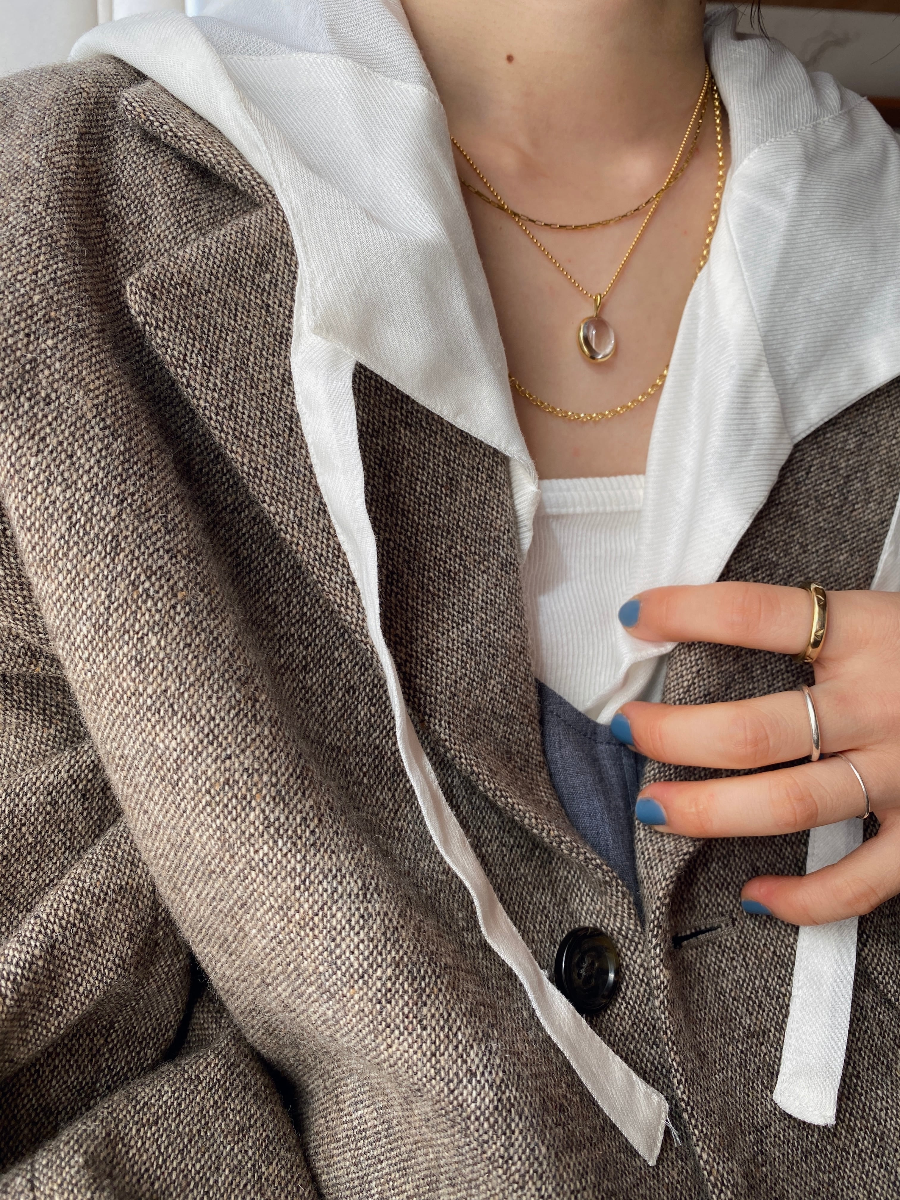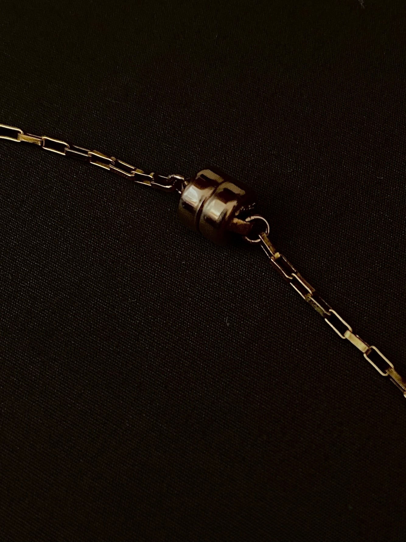 細身のチェーンなので、pearl necklace や tsubu necklace との重ね付けもおすすめです