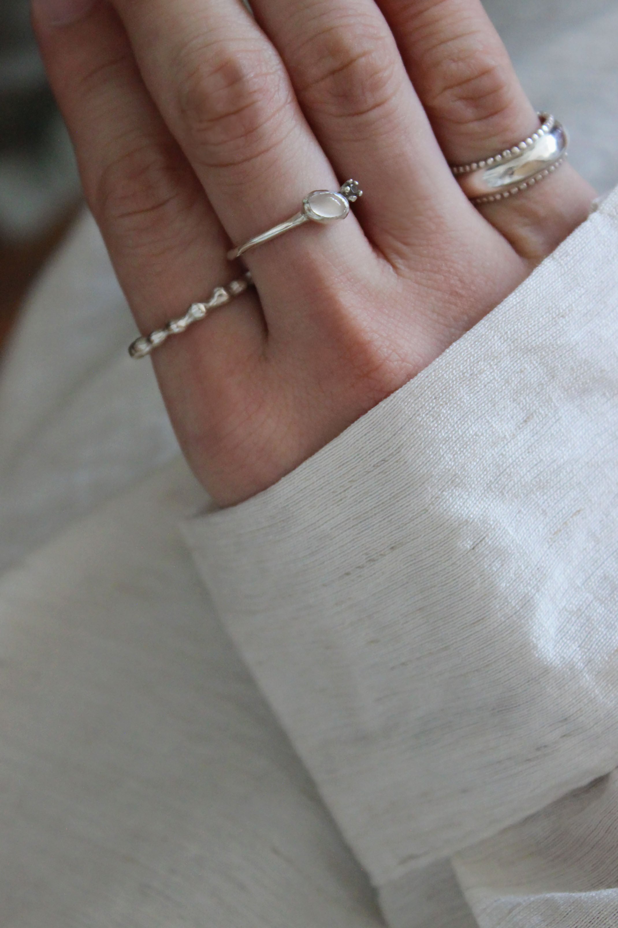 ポツポツした表情が魅力で私自身も何度も手に取っているリングです。