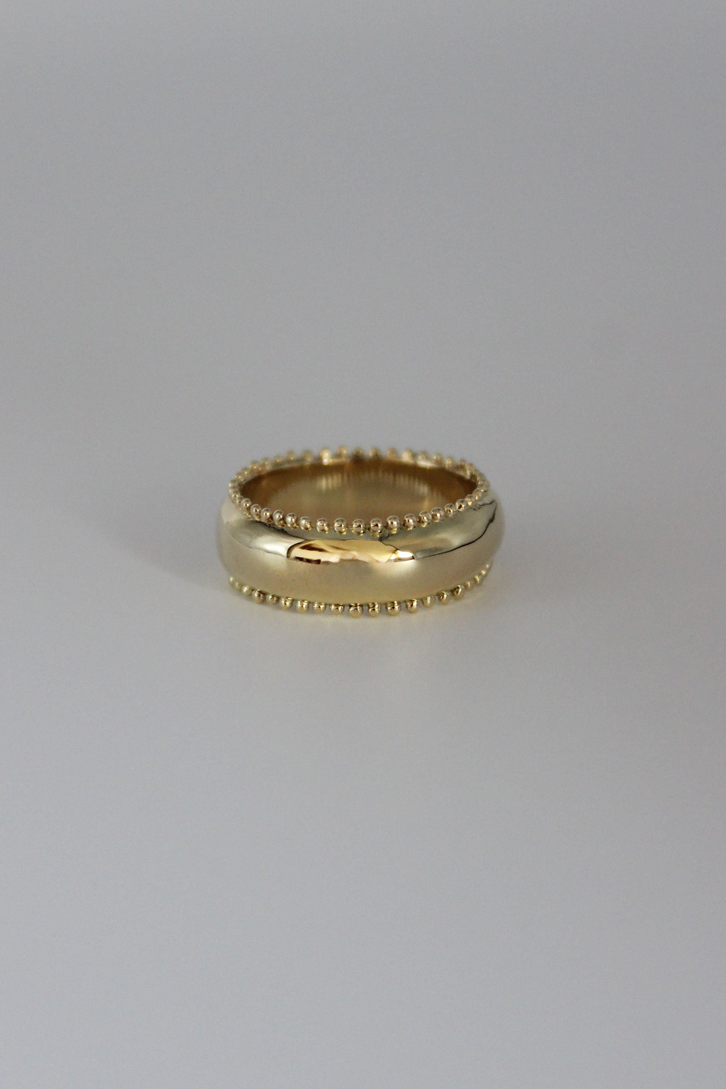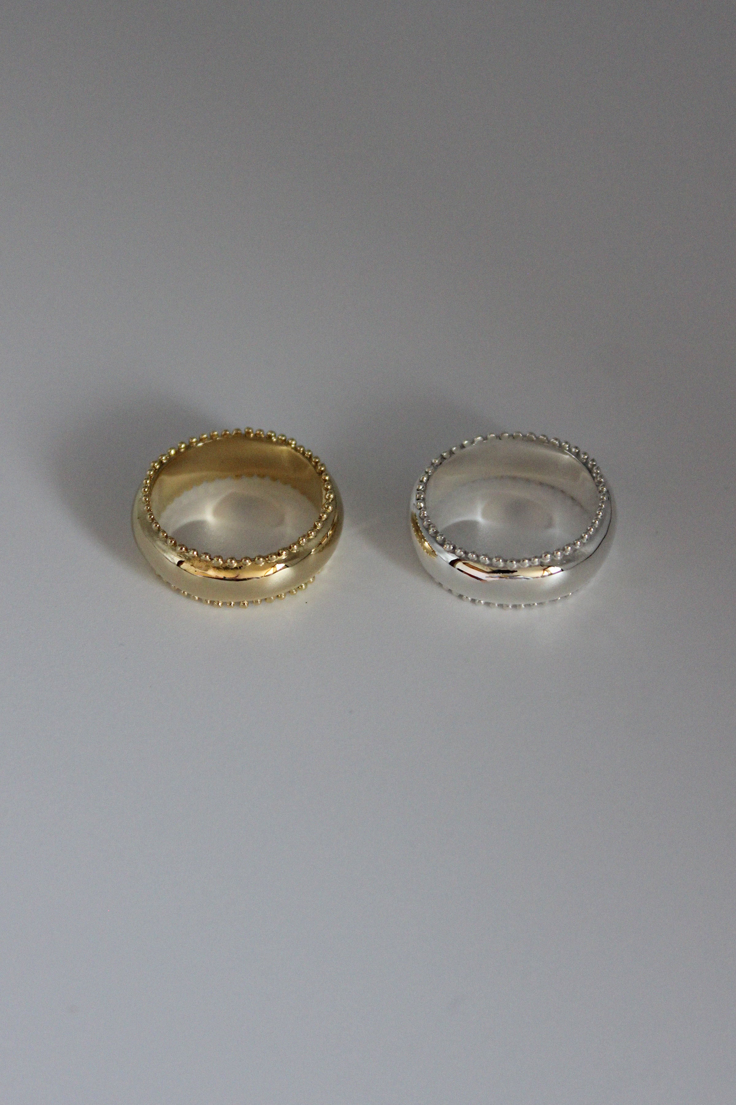 ベースはシンプルな甲丸ですがぽつぽつとした小さなドットで縁取ることで印象的な手元に。